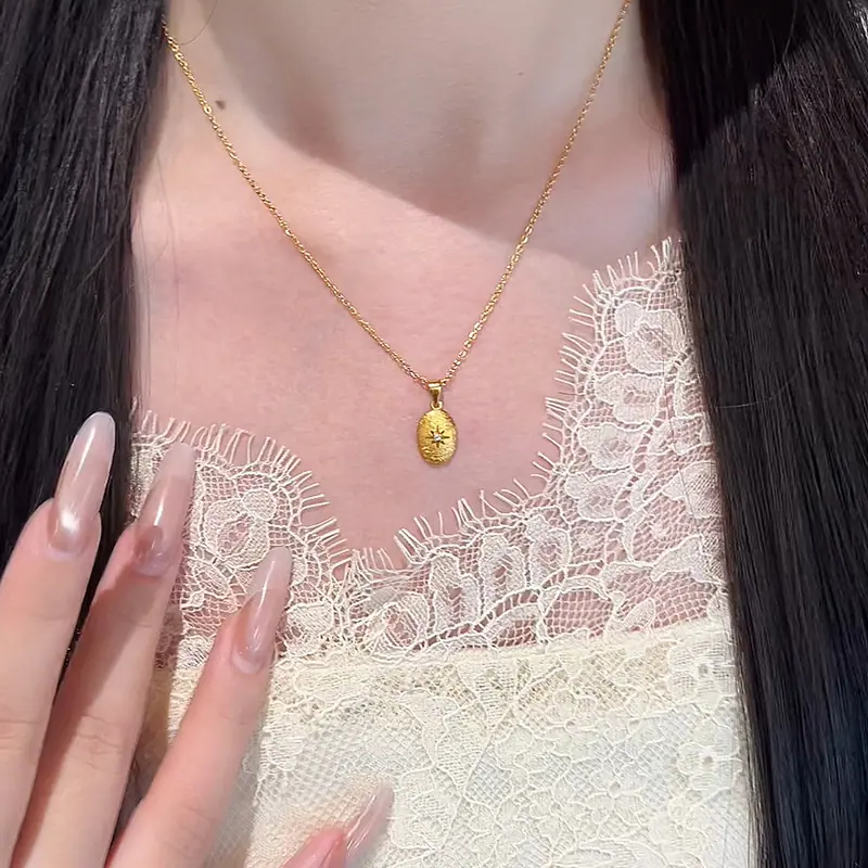 Collar Retro Exquisito con Colgante de Frijol Joyería para Mujer Diseño Nicho de Personalidad Cadena Clavicular de Acero Inoxidable Estrella Estallido Venta al por Mayor