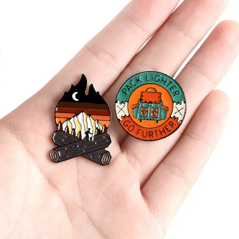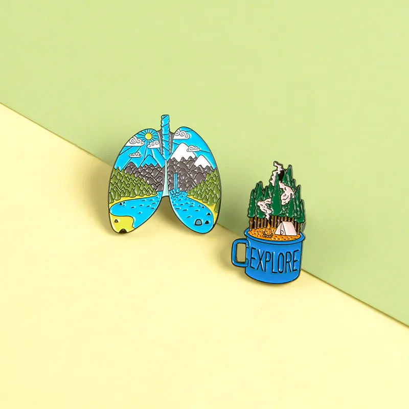 Joyería europea y americana copa de corazón EXPLORA aventura al aire libre pintura aleación boleto de avión reloj de arena pin insignia venta al por mayor