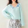 Suéter de punto chic de manga larga de alta gama para el otoño de 2025 con colores contrastantes, estilo holgado y casual
