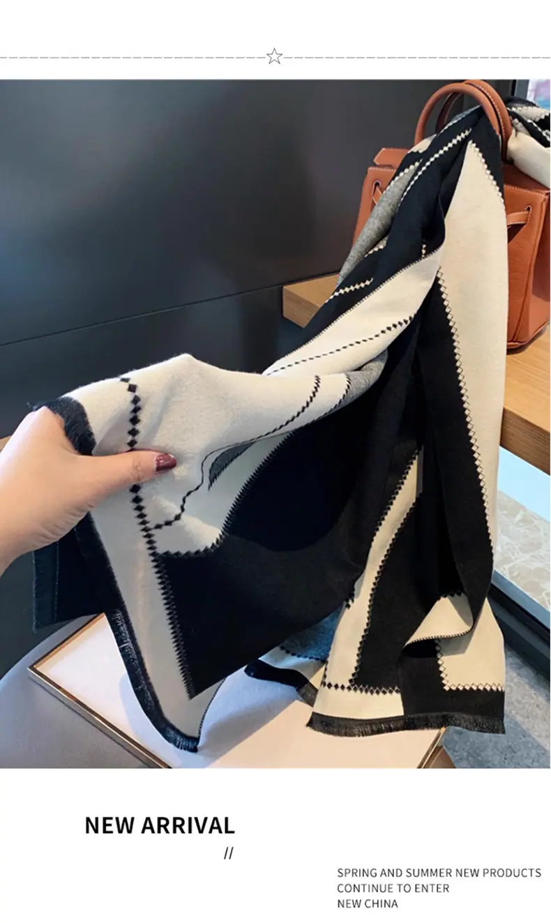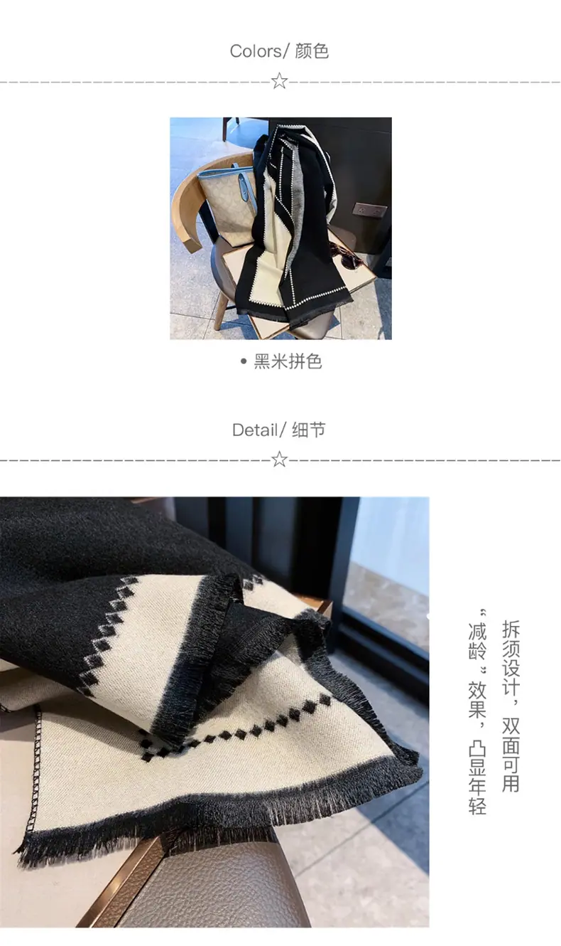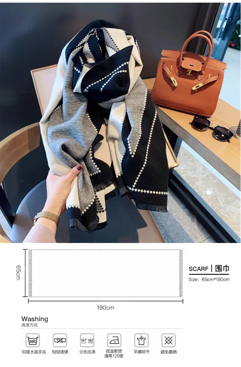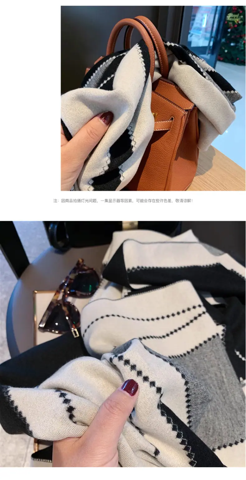 Bufanda para Mujer Invierno 2025 Nueva Bufanda Versátil de Alta Gama Gruesa Cálida Doble Cara Imitación Cachemira Chal Accesorios
