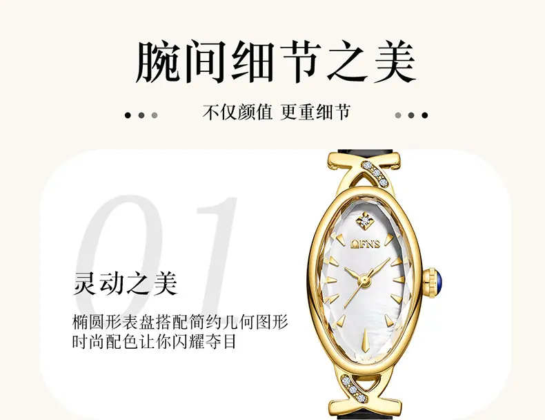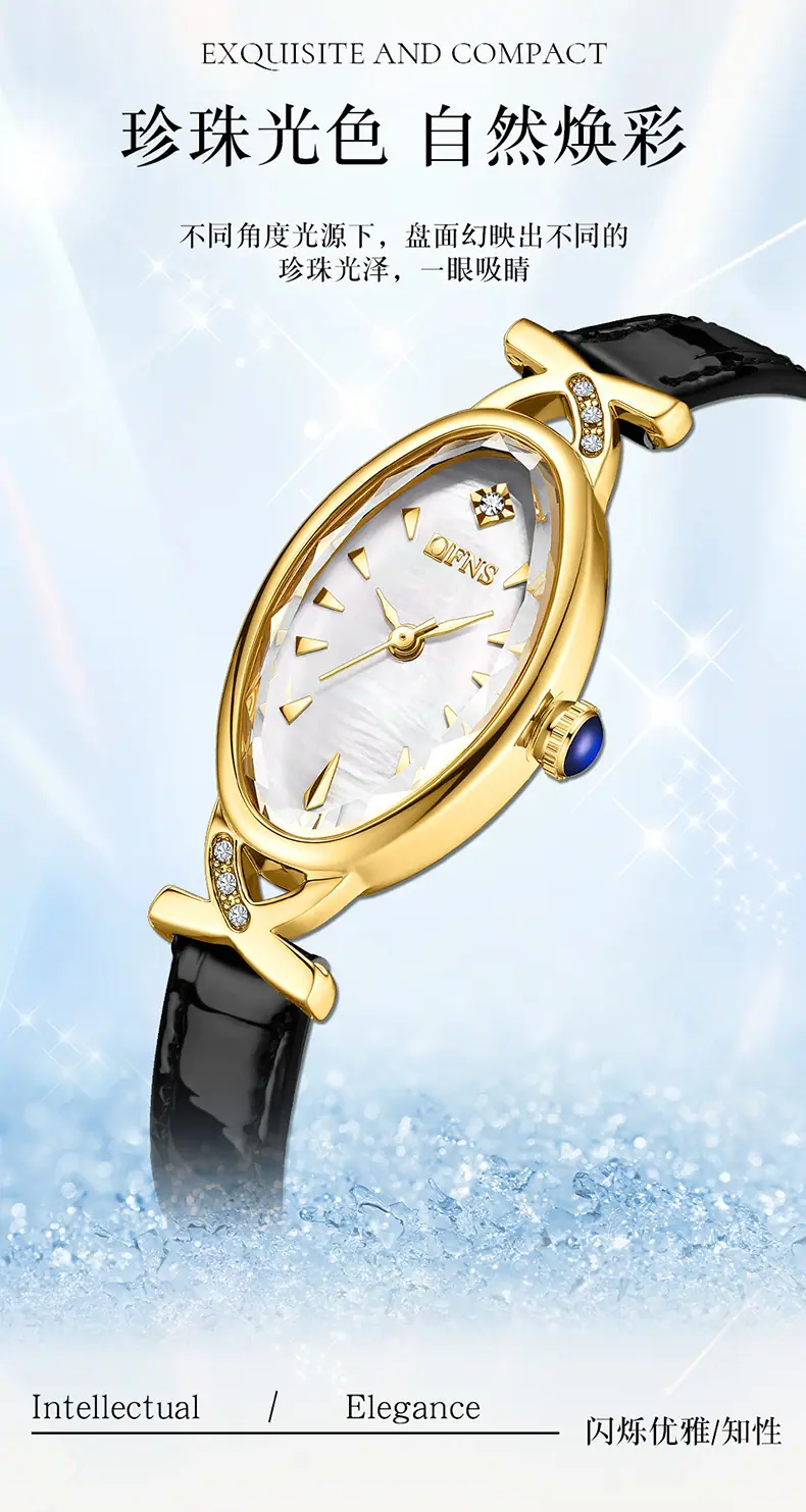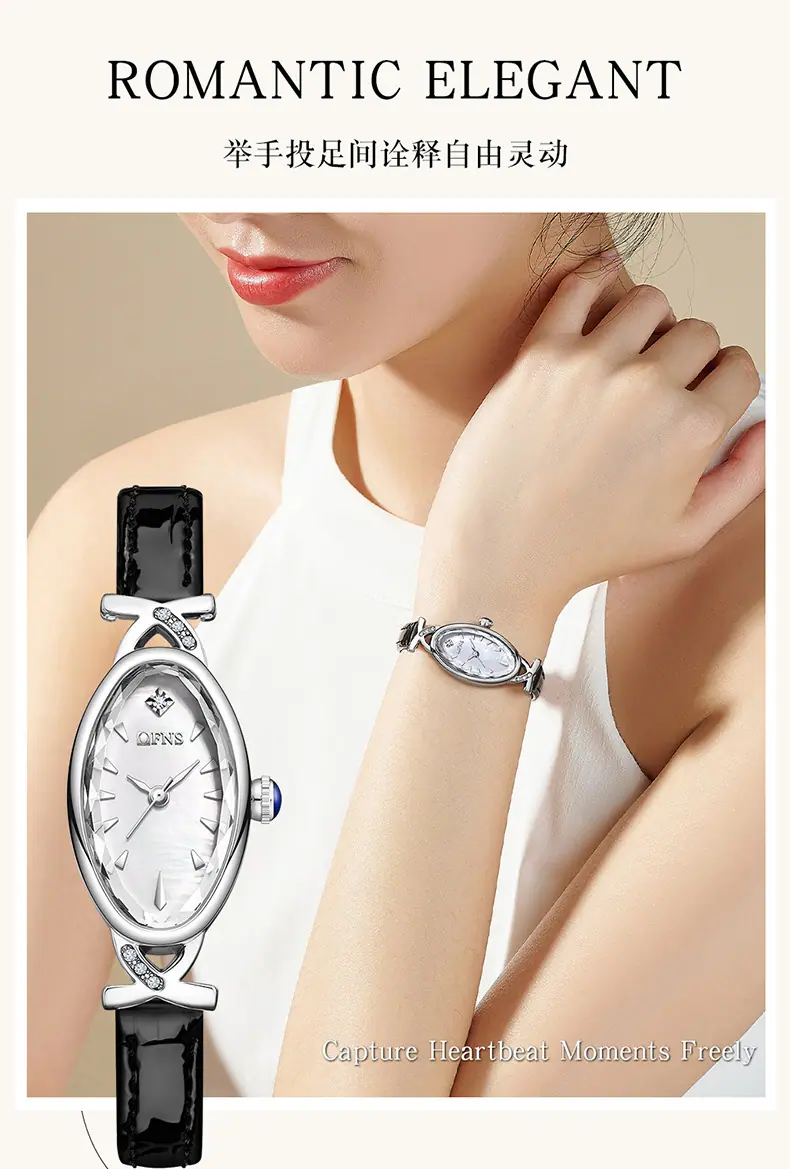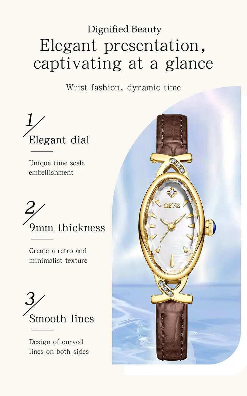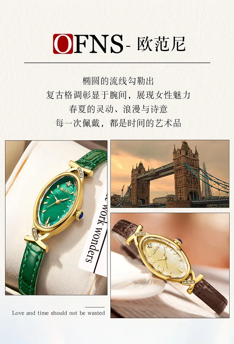 Ofns Reloj de Venta Caliente Transfronterizo Ovalado Nácar Impermeable Reloj de Cuarzo Retro Exquisito Reloj de Dama al por Mayor