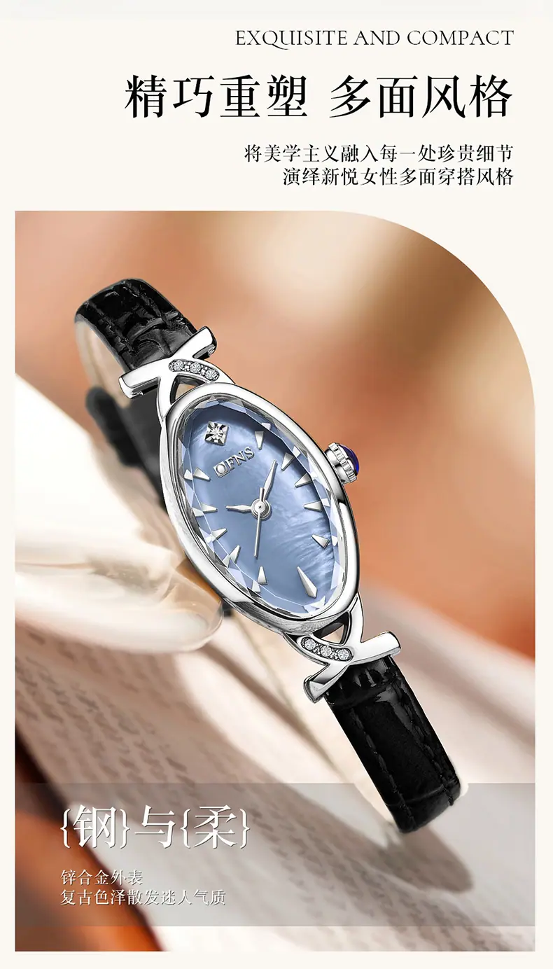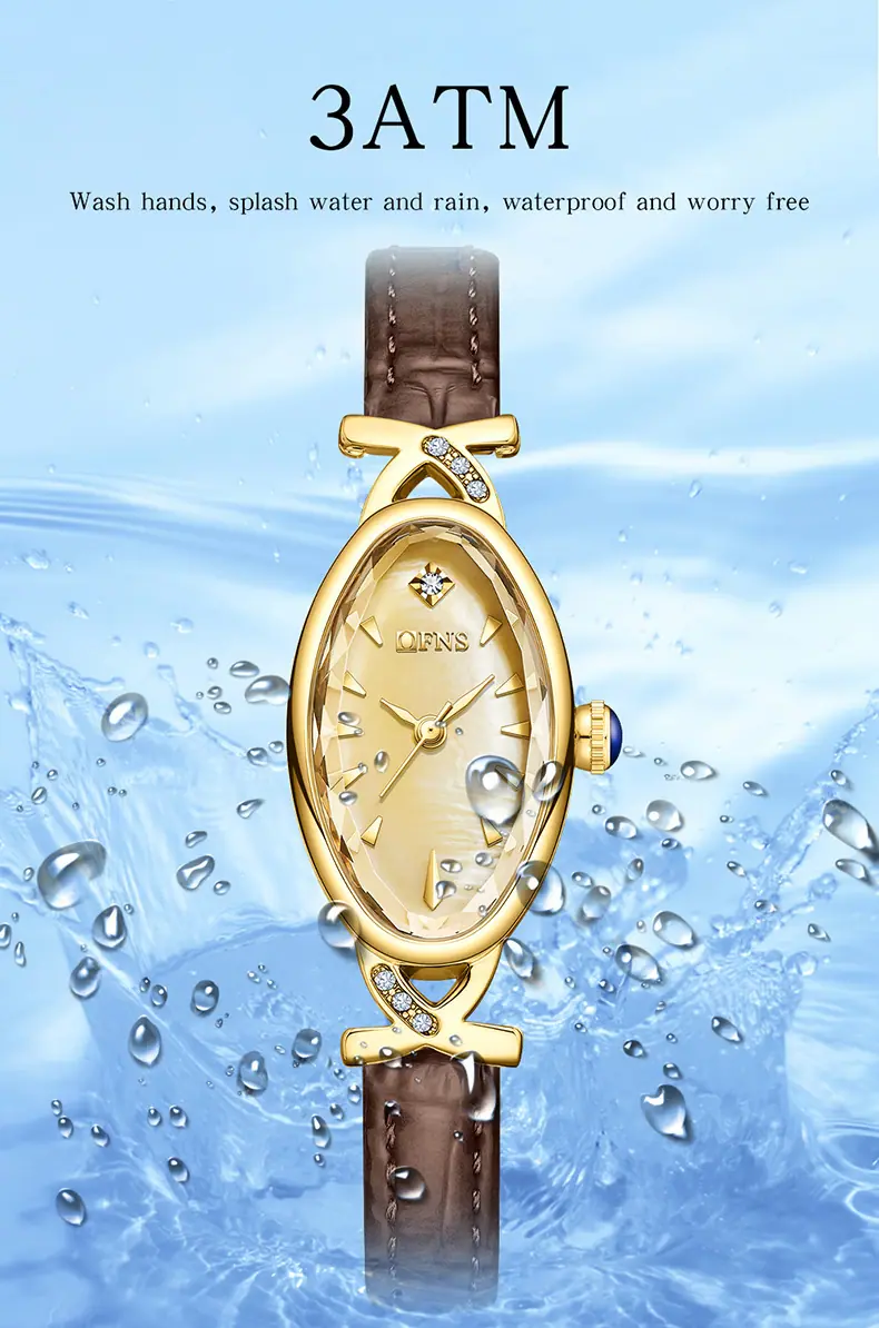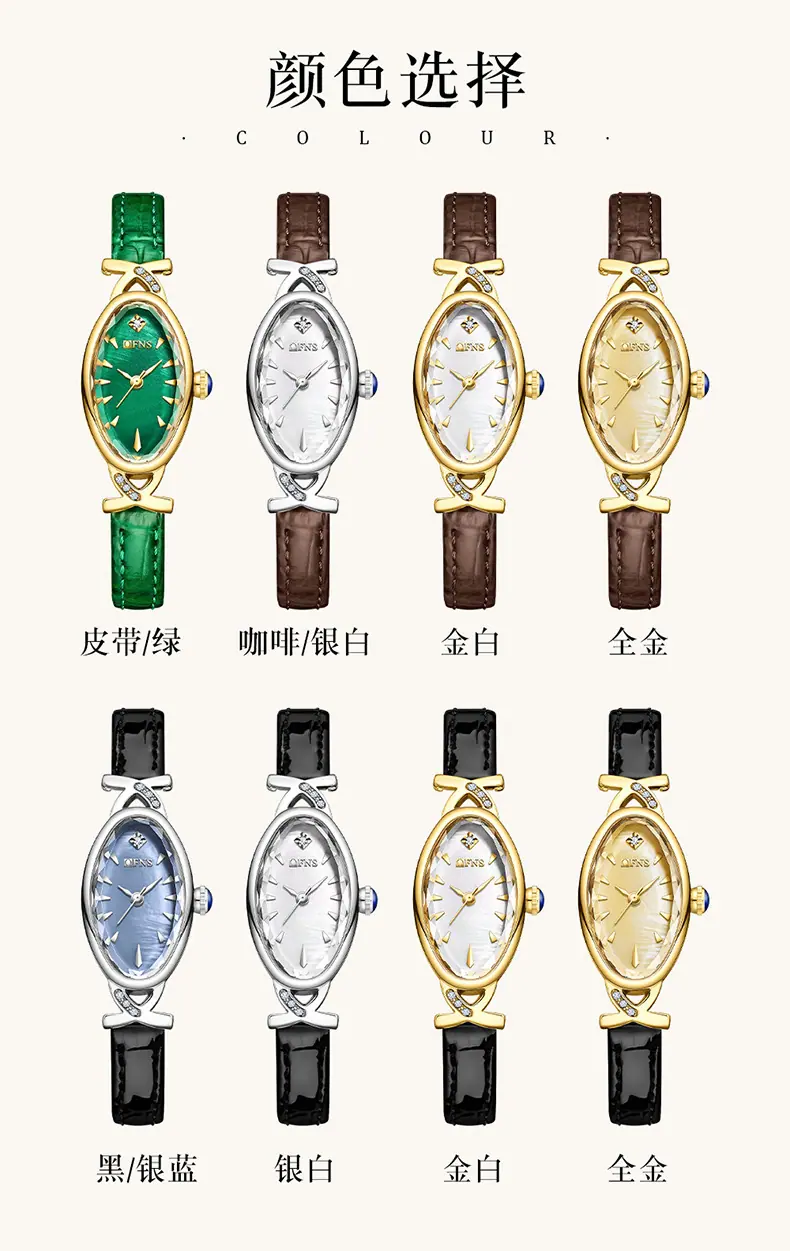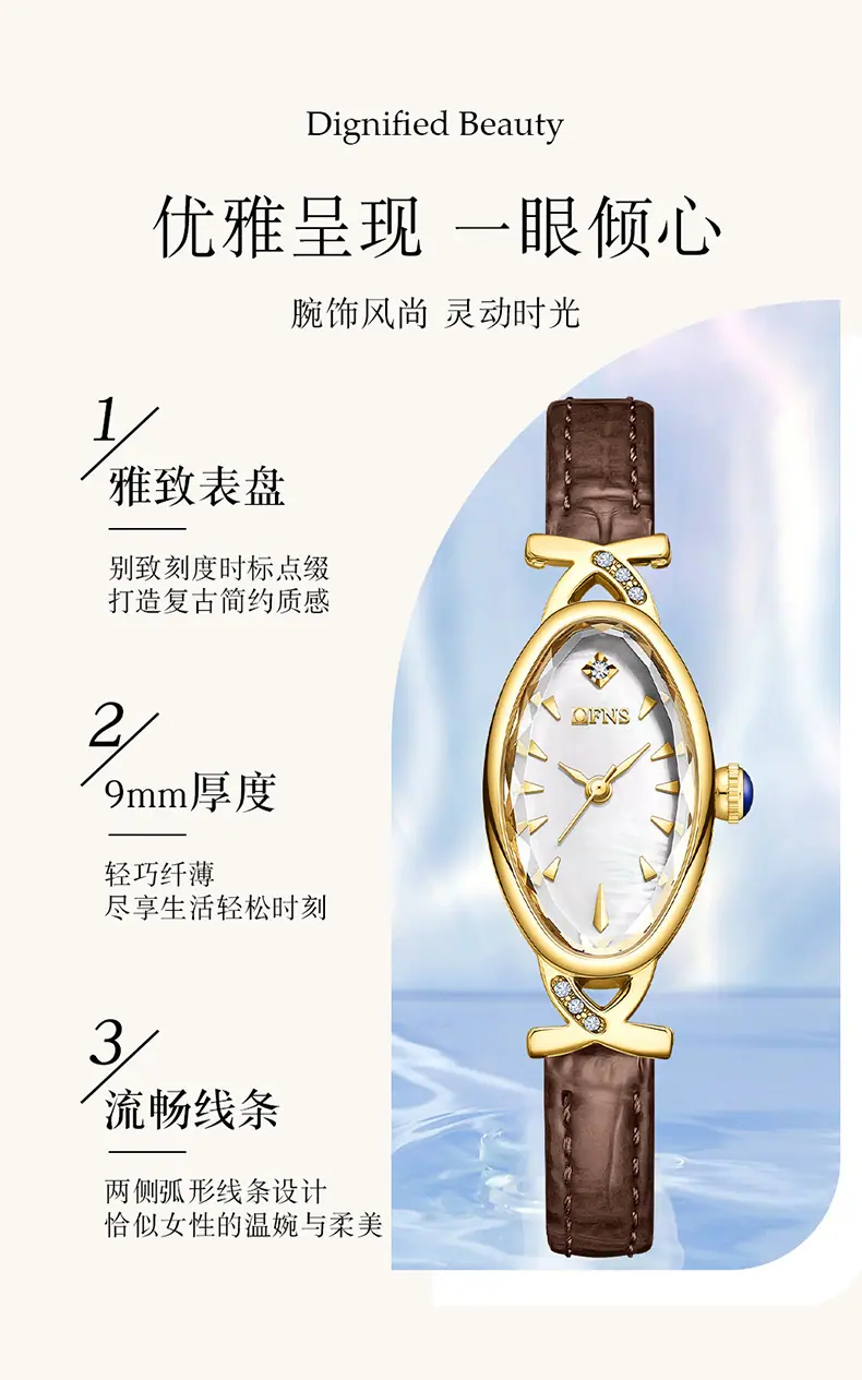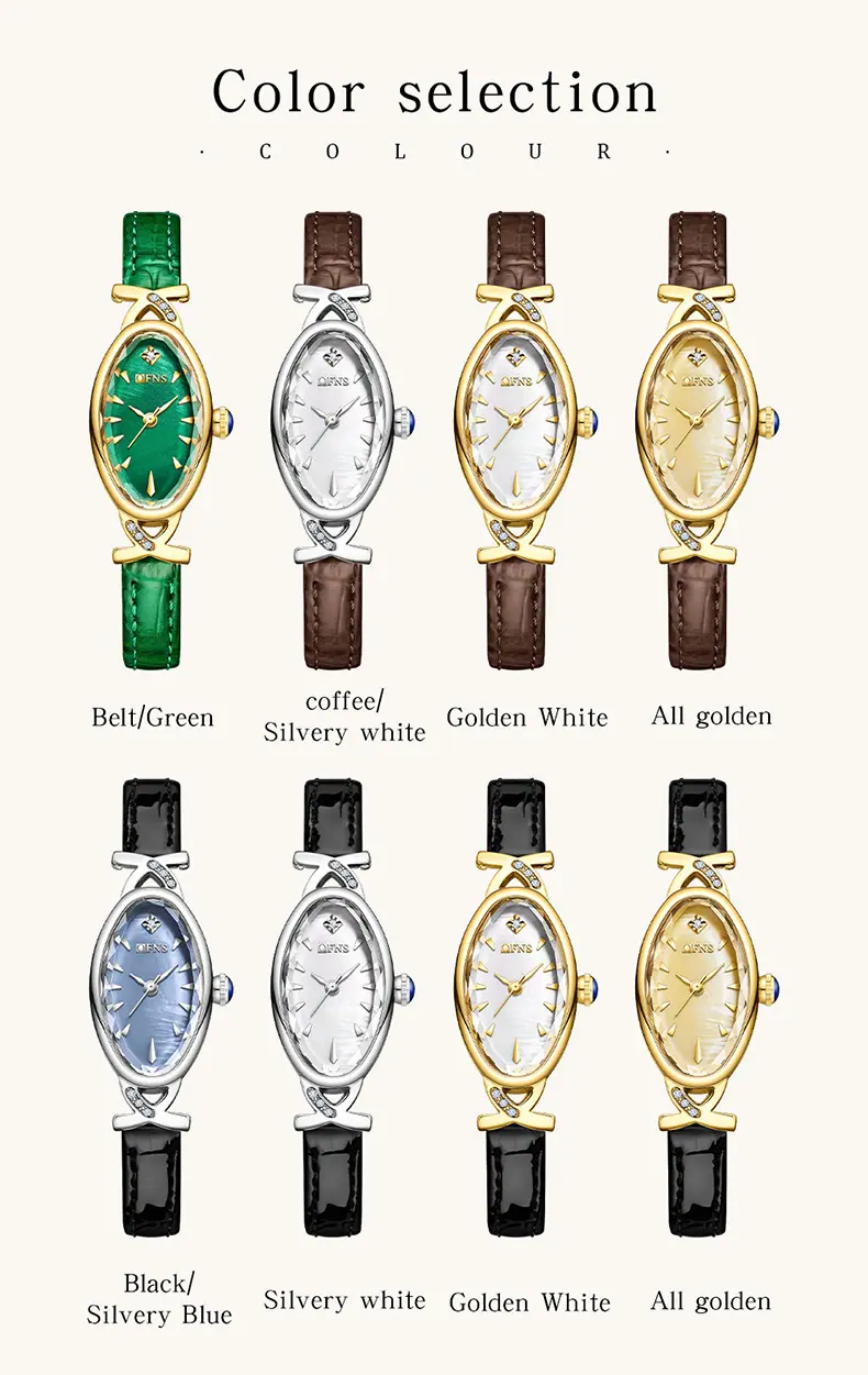 Ofns Reloj de Venta Caliente Transfronterizo Ovalado Nácar Impermeable Reloj de Cuarzo Retro Exquisito Reloj de Dama al por Mayor