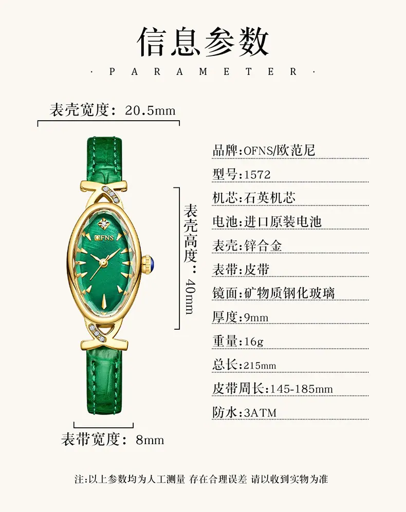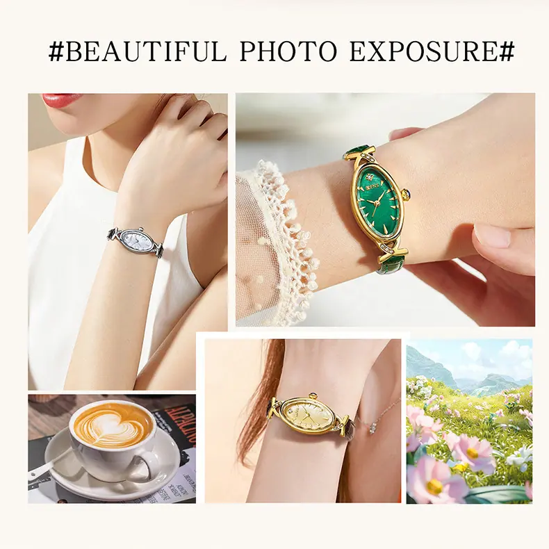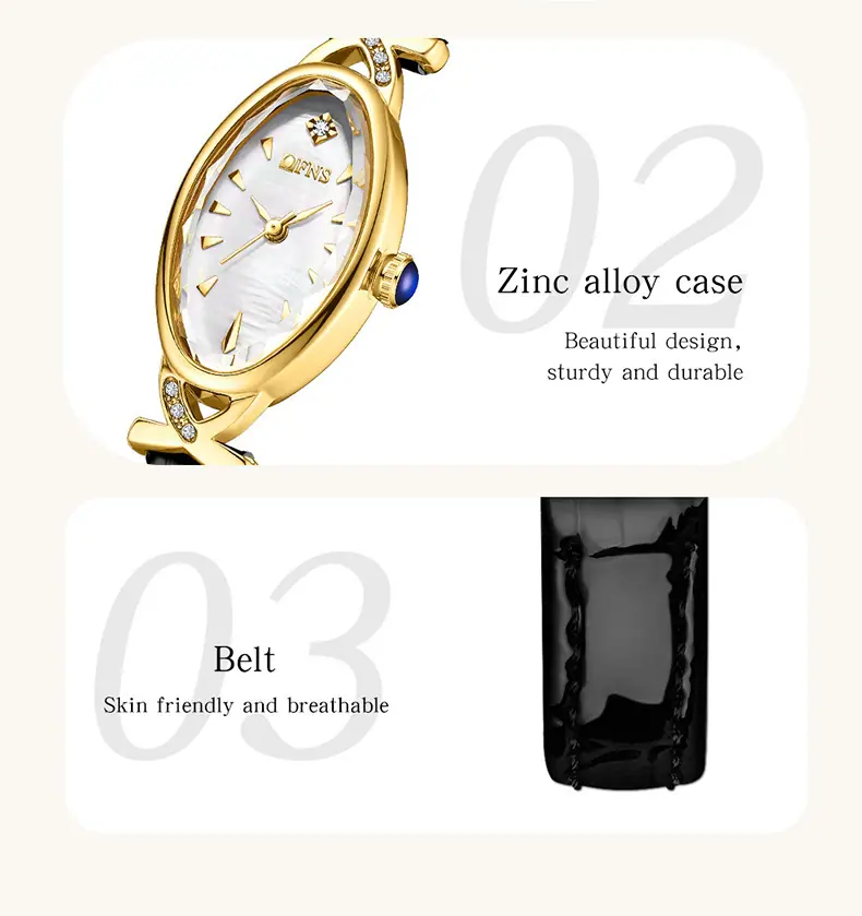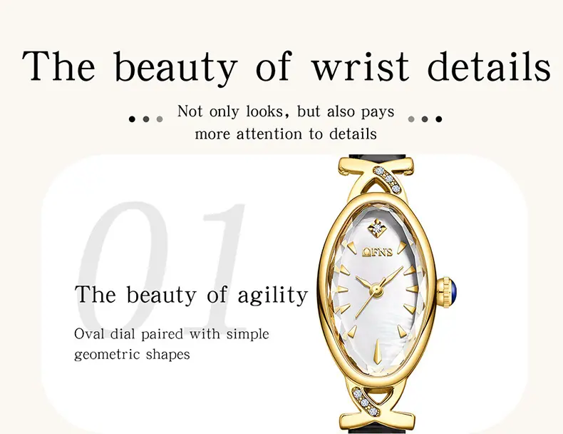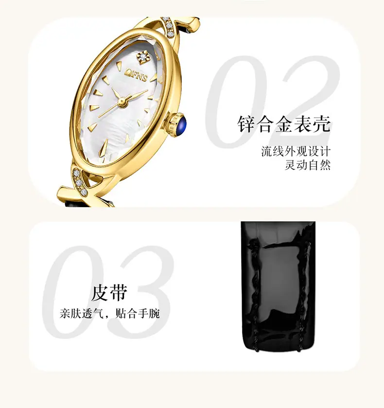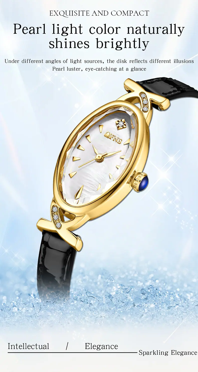 Ofns Reloj de Venta Caliente Transfronterizo Ovalado Nácar Impermeable Reloj de Cuarzo Retro Exquisito Reloj de Dama al por Mayor