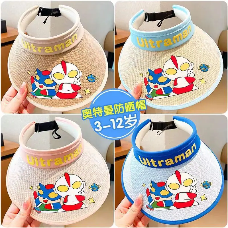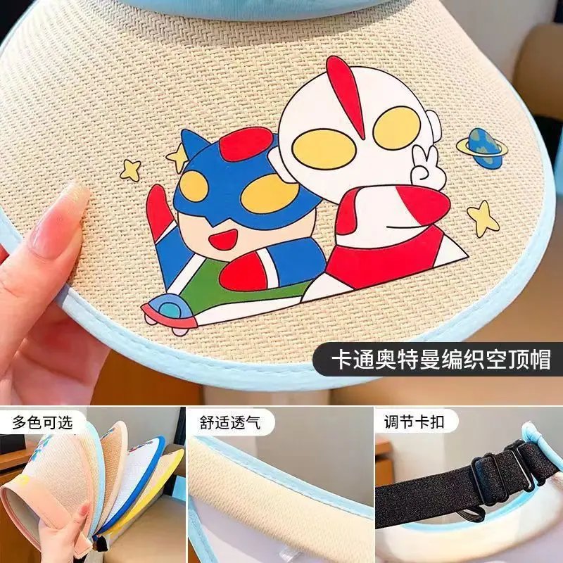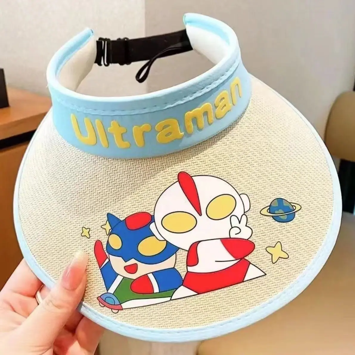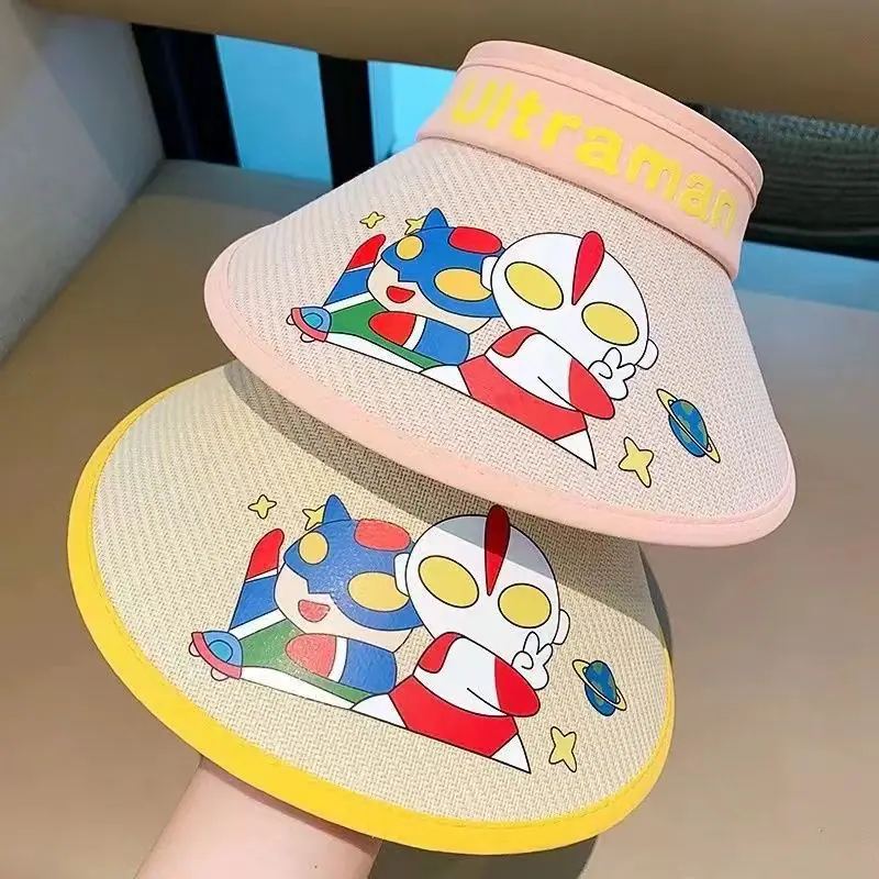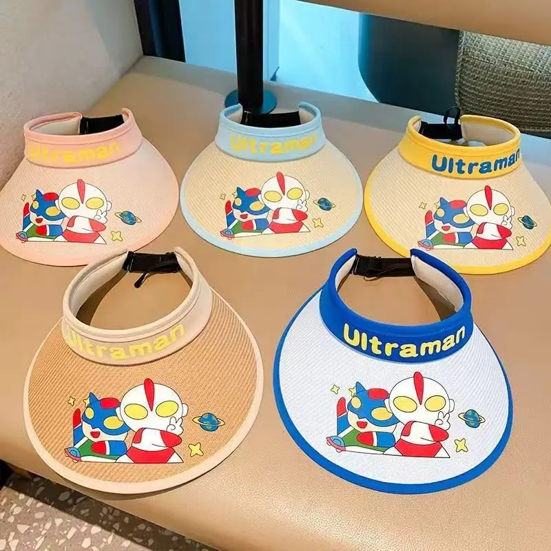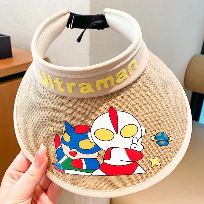 Verano Nuevo Dibujos Animados Sombrero Infantil Ultraman Paja Copa Vacía Sombrero para el Sol Ajustable Sombrero para el Sol para Niños Transfronterizo