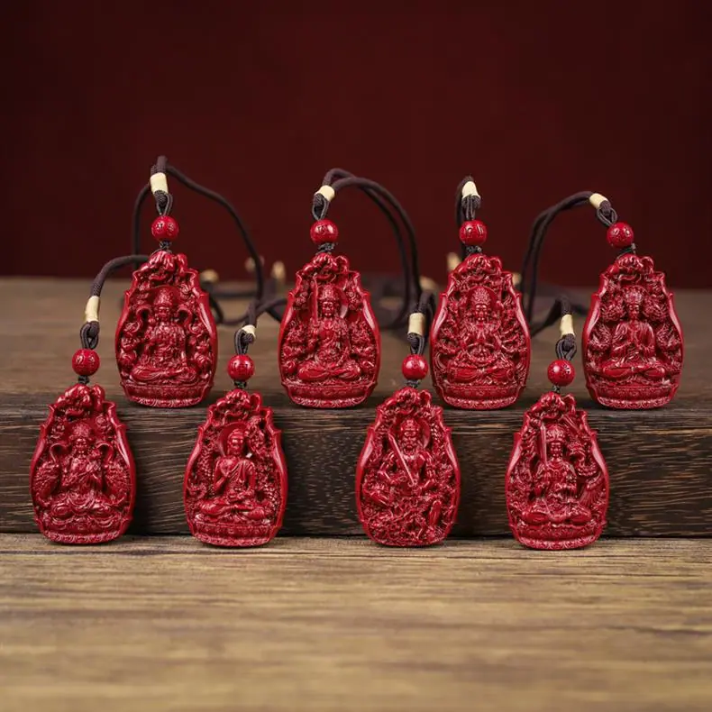 Alto Contenido Cinabrio Doce Zodiaco Ocho Dioses Guardianes Regalo Hombres y Mujeres Colgante de Cinabrio Buda Benming