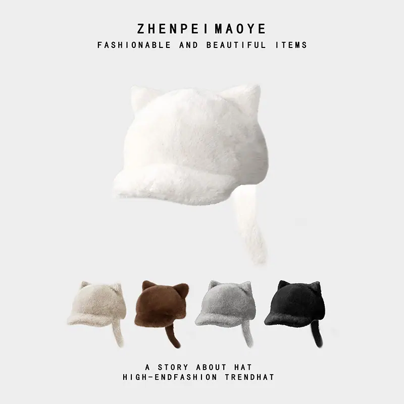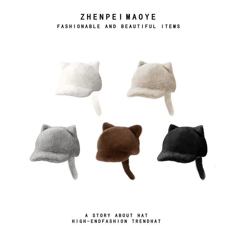 Sombrero de invierno de imitación de piel de visón para mujer, imitación de piel de visón entera, visón, moda, cálido, de algodón, con orejas de gato, gorra de béisbol de felpa, tendencia