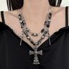 Collar con Cruz de Remaches y Perlas en Blanco y Negro Estilo Gótico Oscuro Cadena de Clavícula Apilada Moda Punk Sexy Nicho Femenino