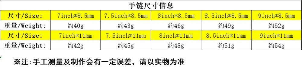 Bracelet 7 inches (length 17.78cm), Bracelet 8 inches (length 20.32cm), Bracelet 9 inches (length 22.86cm)
