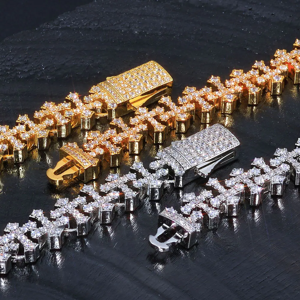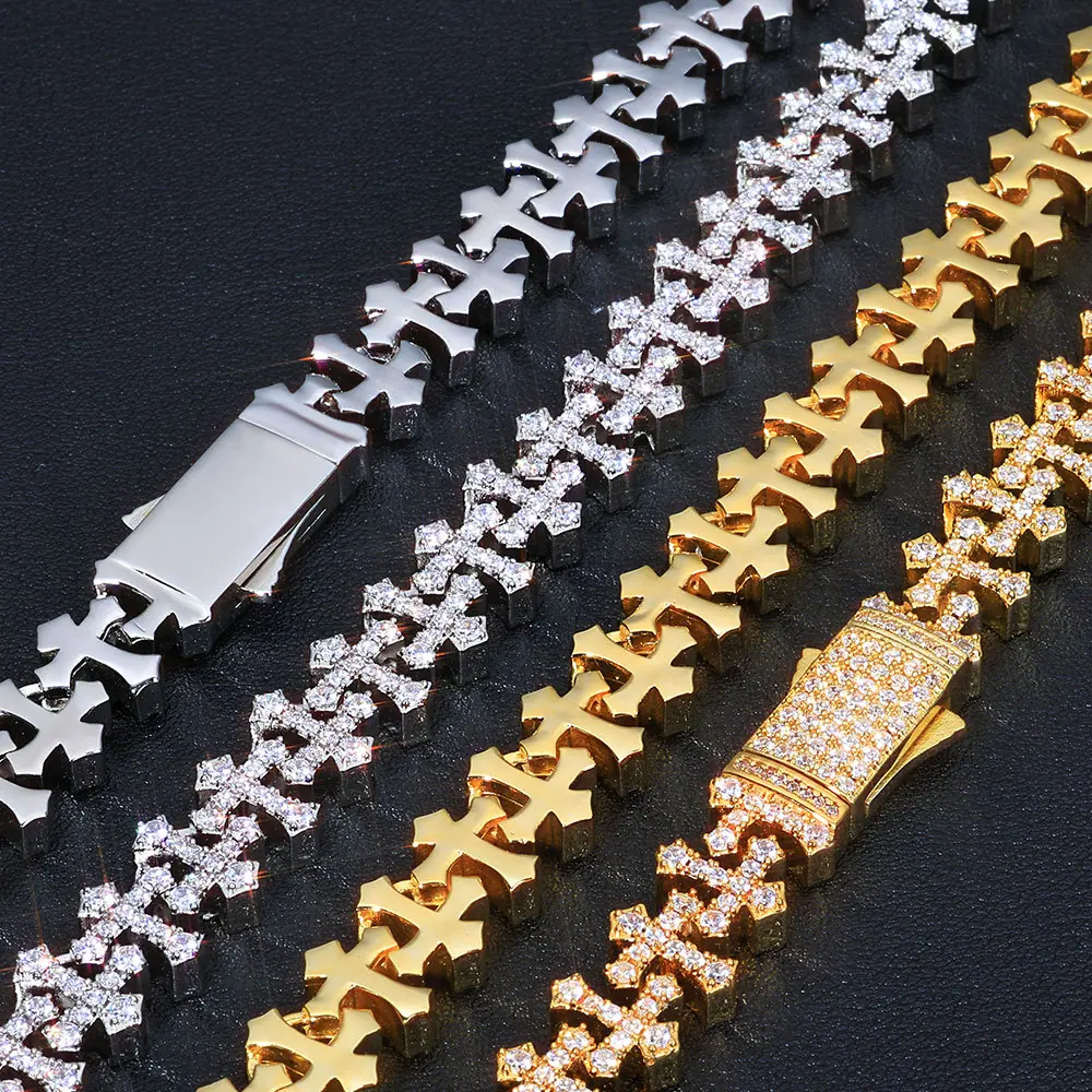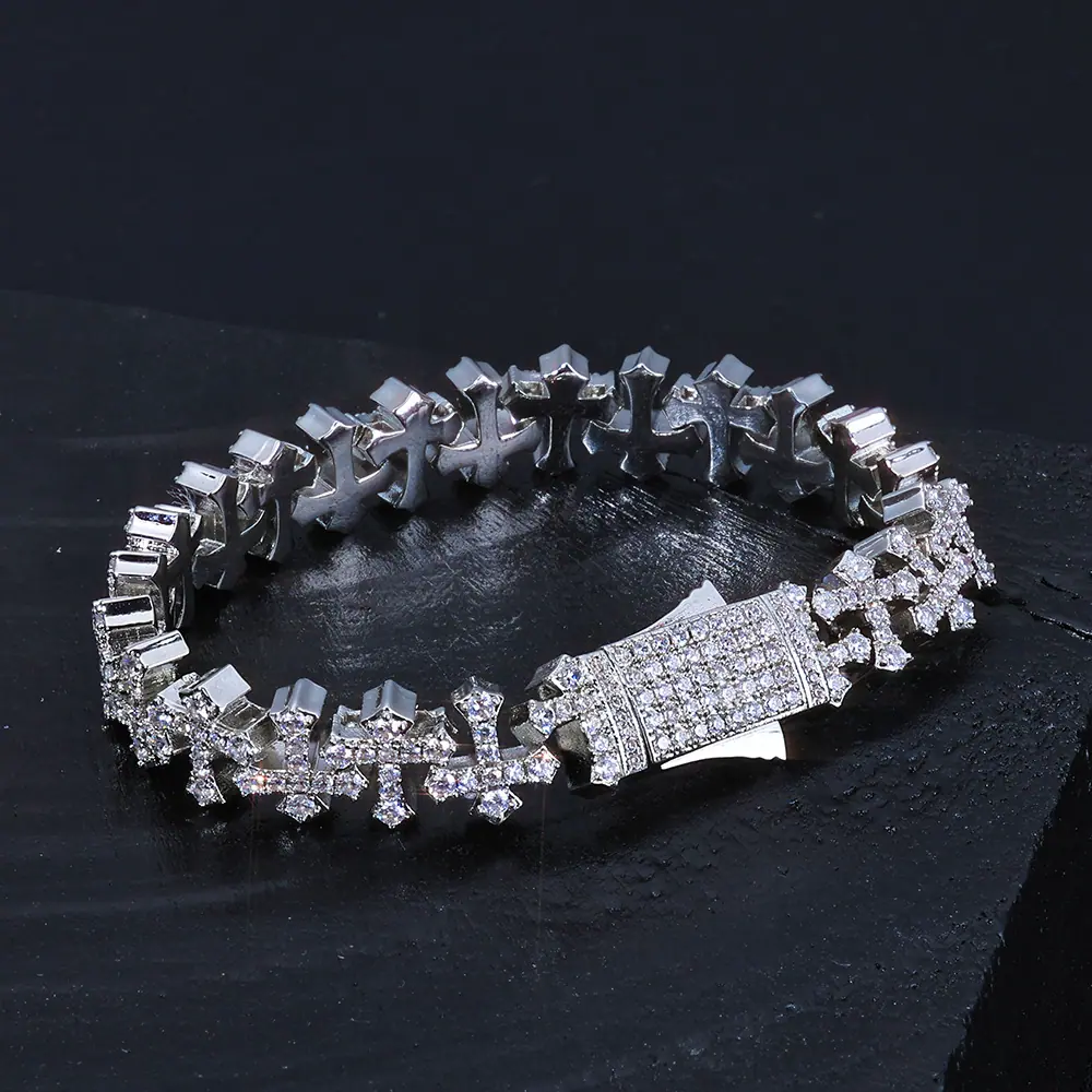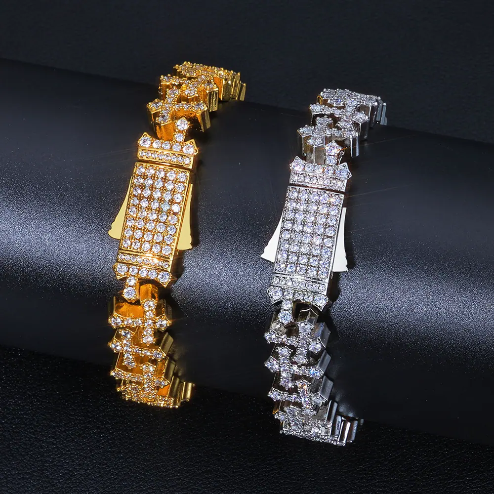 Pulsera Hip Hop Cruz Broche a Presión Trendy Europeo y Americano Joyería Diamante Completo Zircón Accesorios Pulsera para Hombre Personalizado