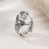 Yuebao Joyería Cristal Blanco Plata Pura S990 Pixiu Tallado Moneda Ruyi Patrón de Hierba Tang Versión Ancha Anillo Chino Venta al por Mayor