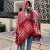 Capa de Estilo Étnico Chal Rayado Capa para Mujer con Sombrero Gruesa Cálida Yunnan Xizang Viaje Bufanda Capa Abrigo