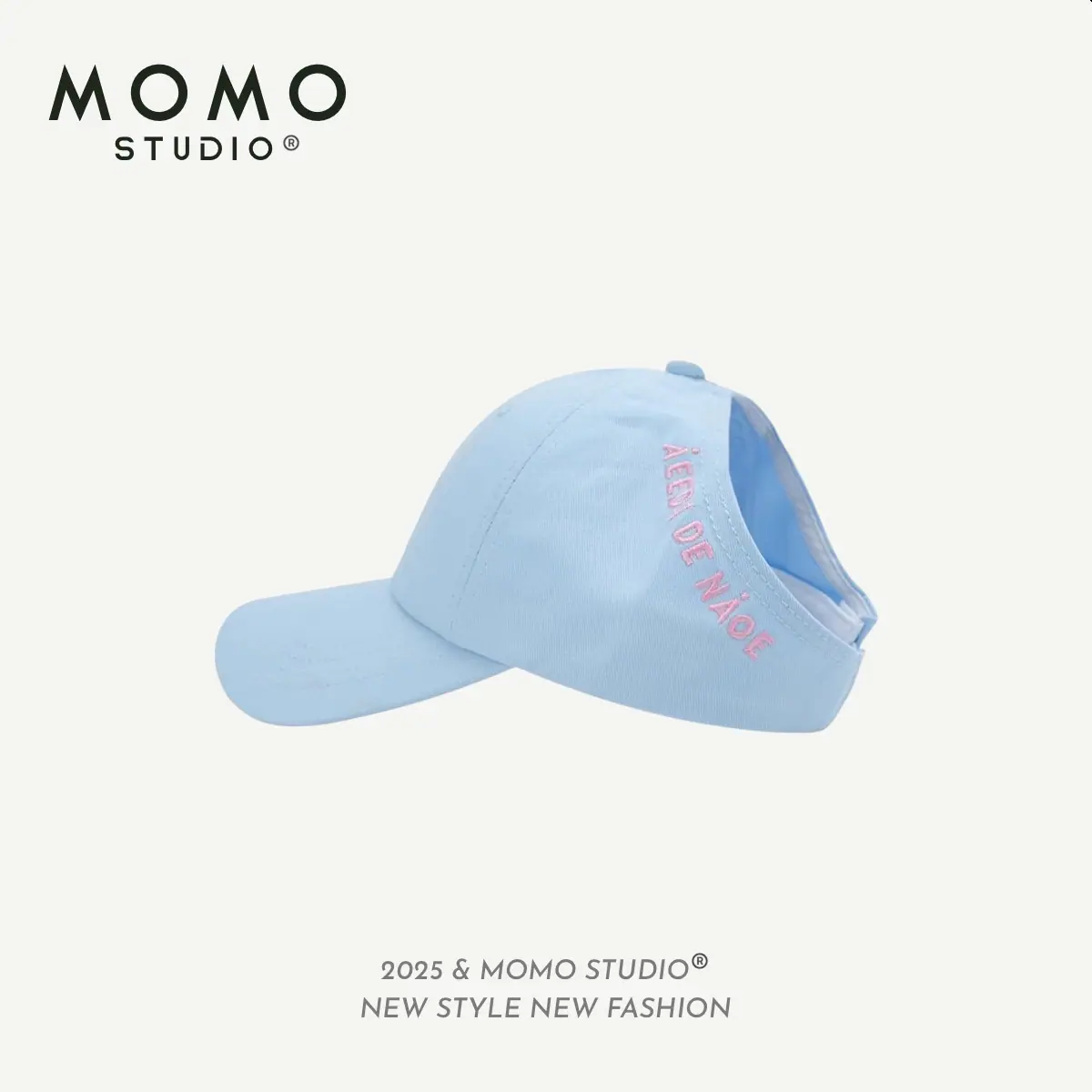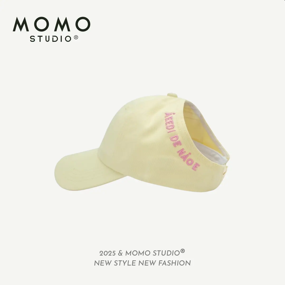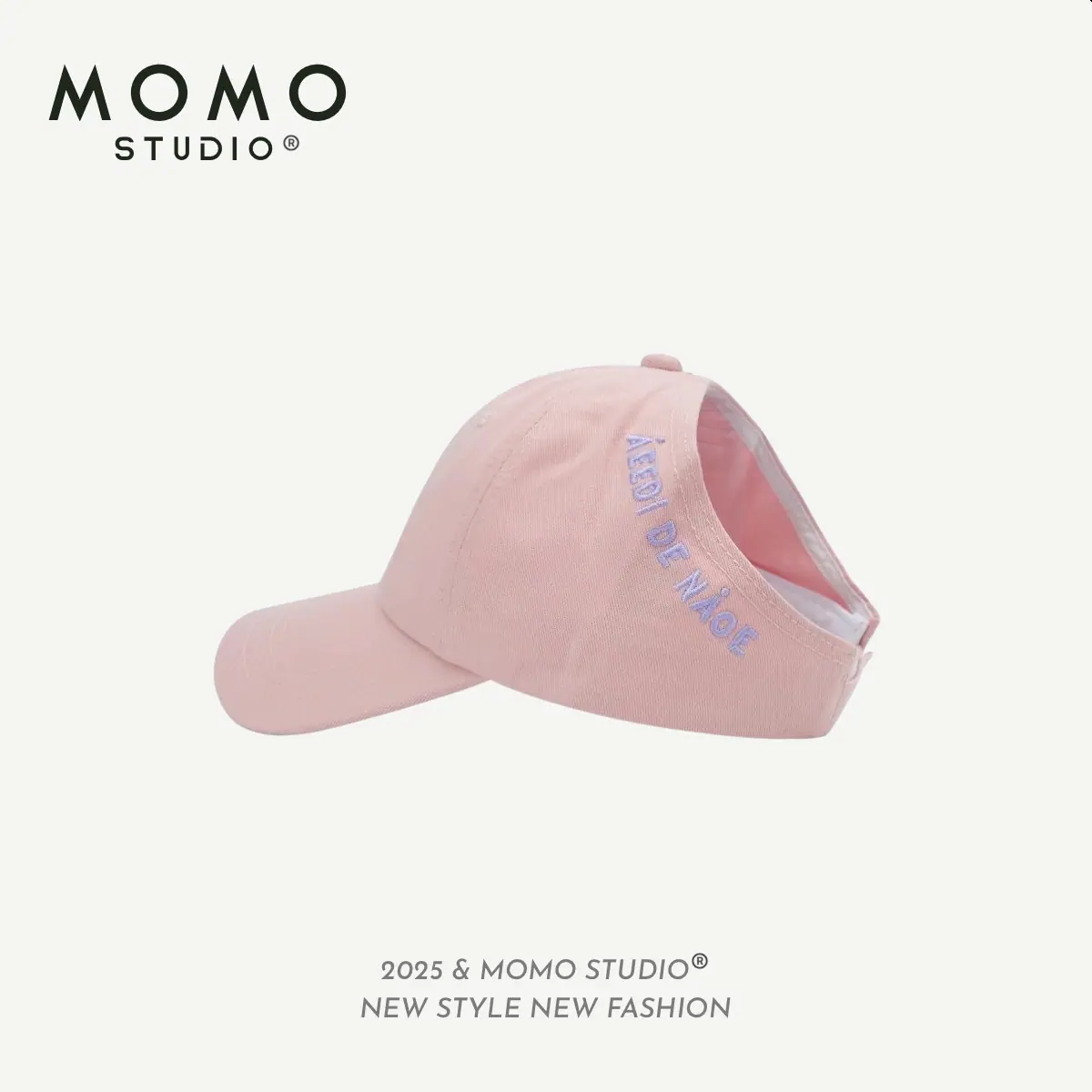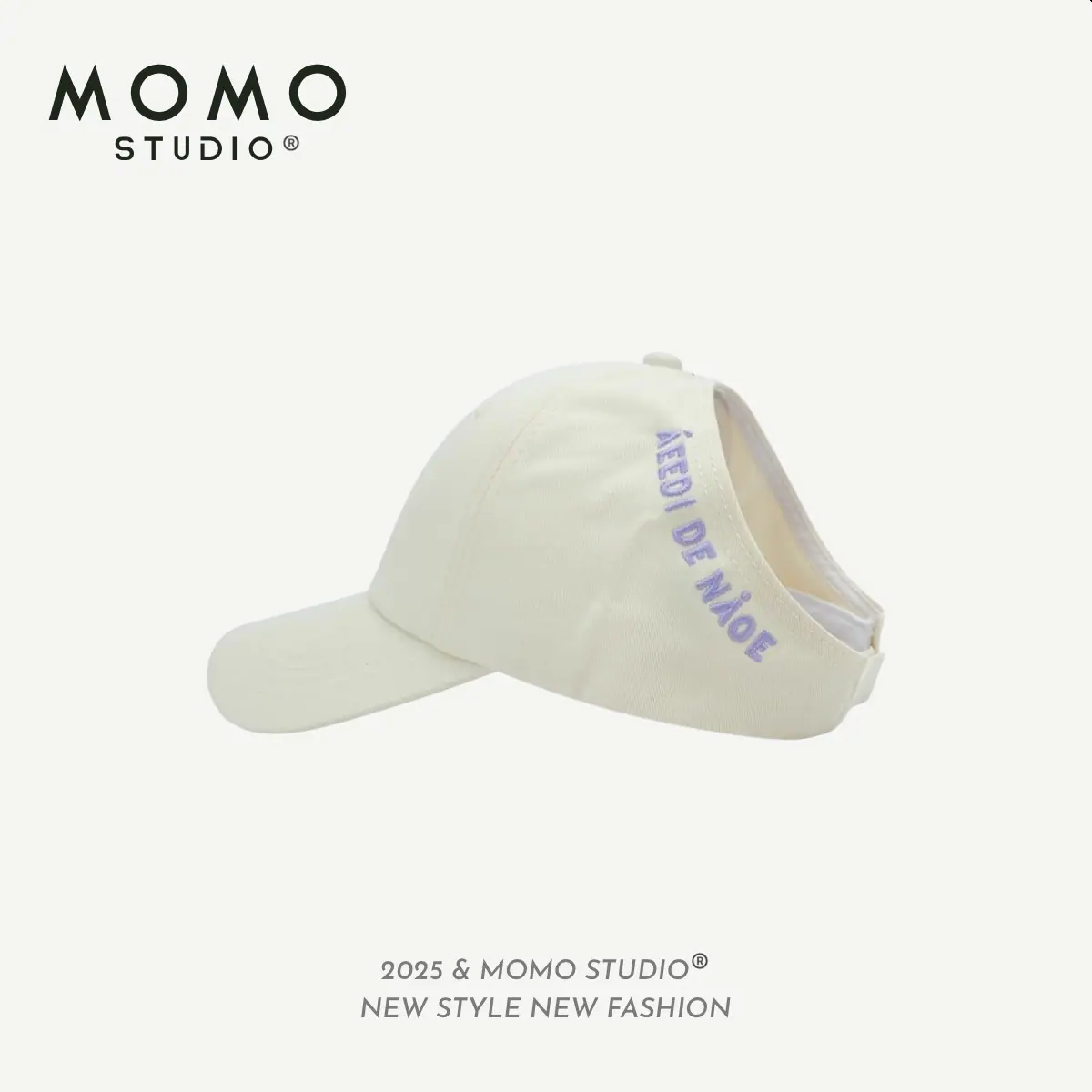 Gorra de Béisbol Bordada con Carta de Amor, Top Medio Vacío, para Mujer, Estilo Coreano Dulce y Lindo, Combinable con Todo, Gorra con Cola Payon para Sombra Solar