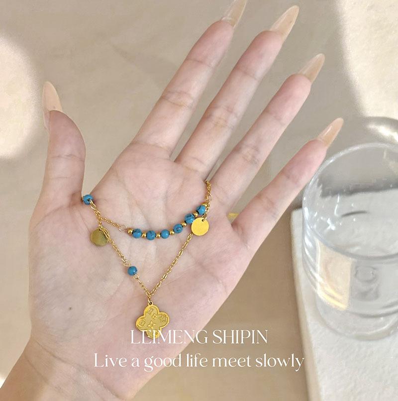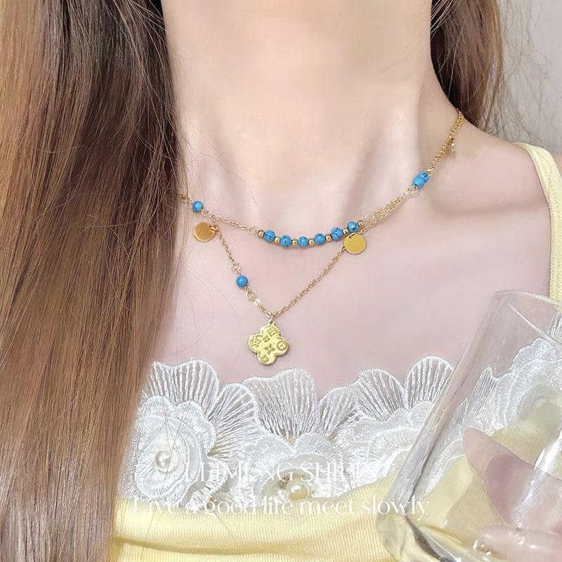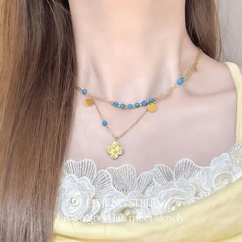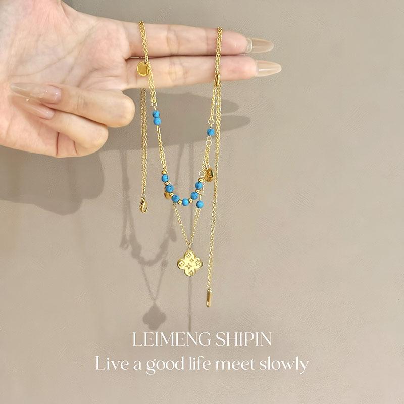 Collar con colgante de flor de cuatro hojas retro europeo y americano transfronterizo, cadena pequeña multicapa para clavícula, collar personalizado de alta gama para mujer
