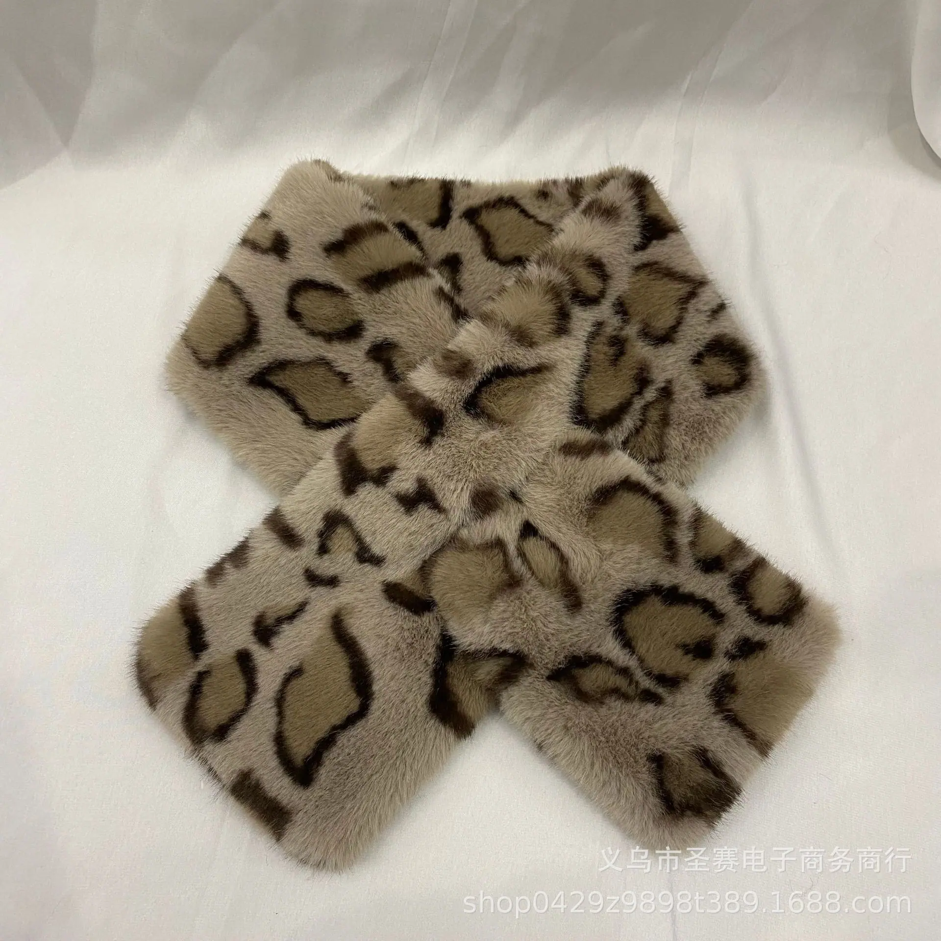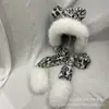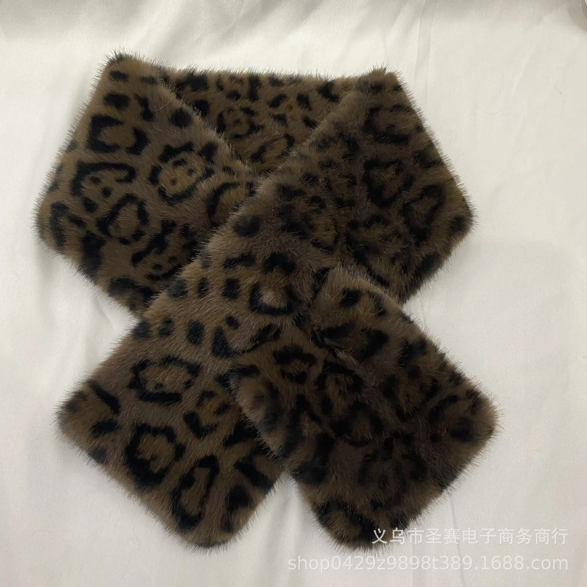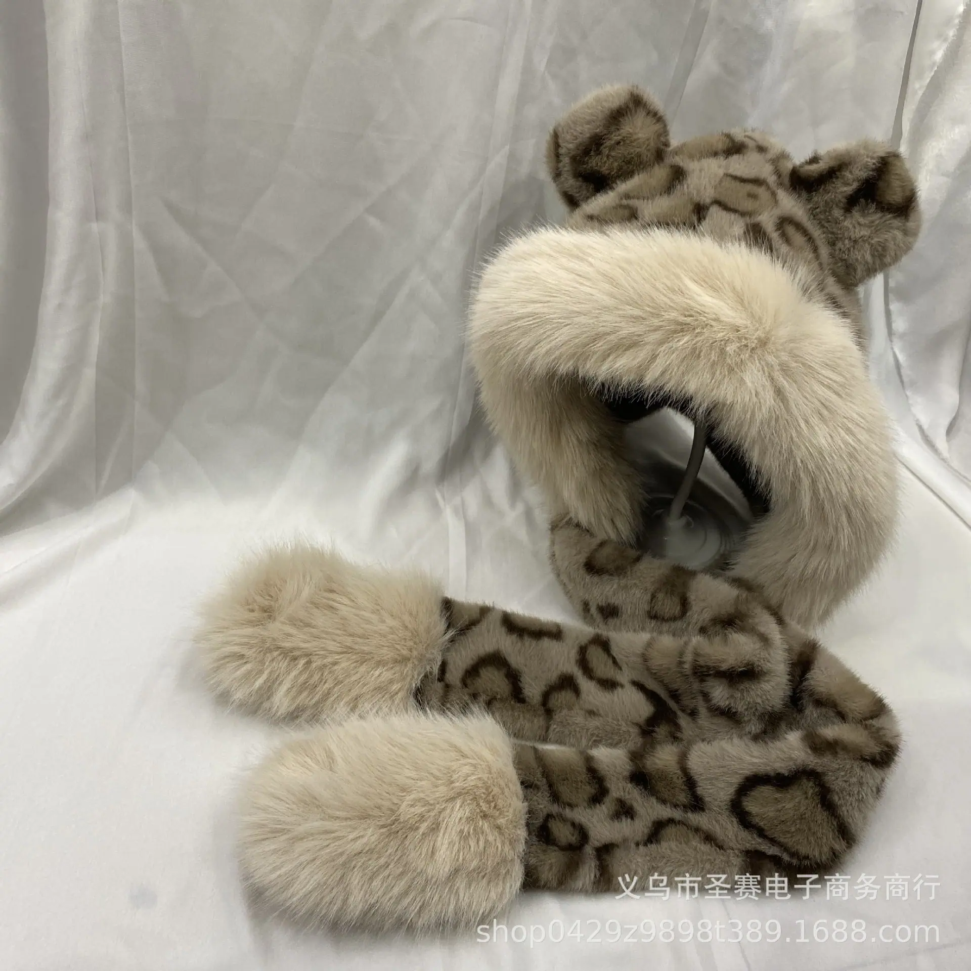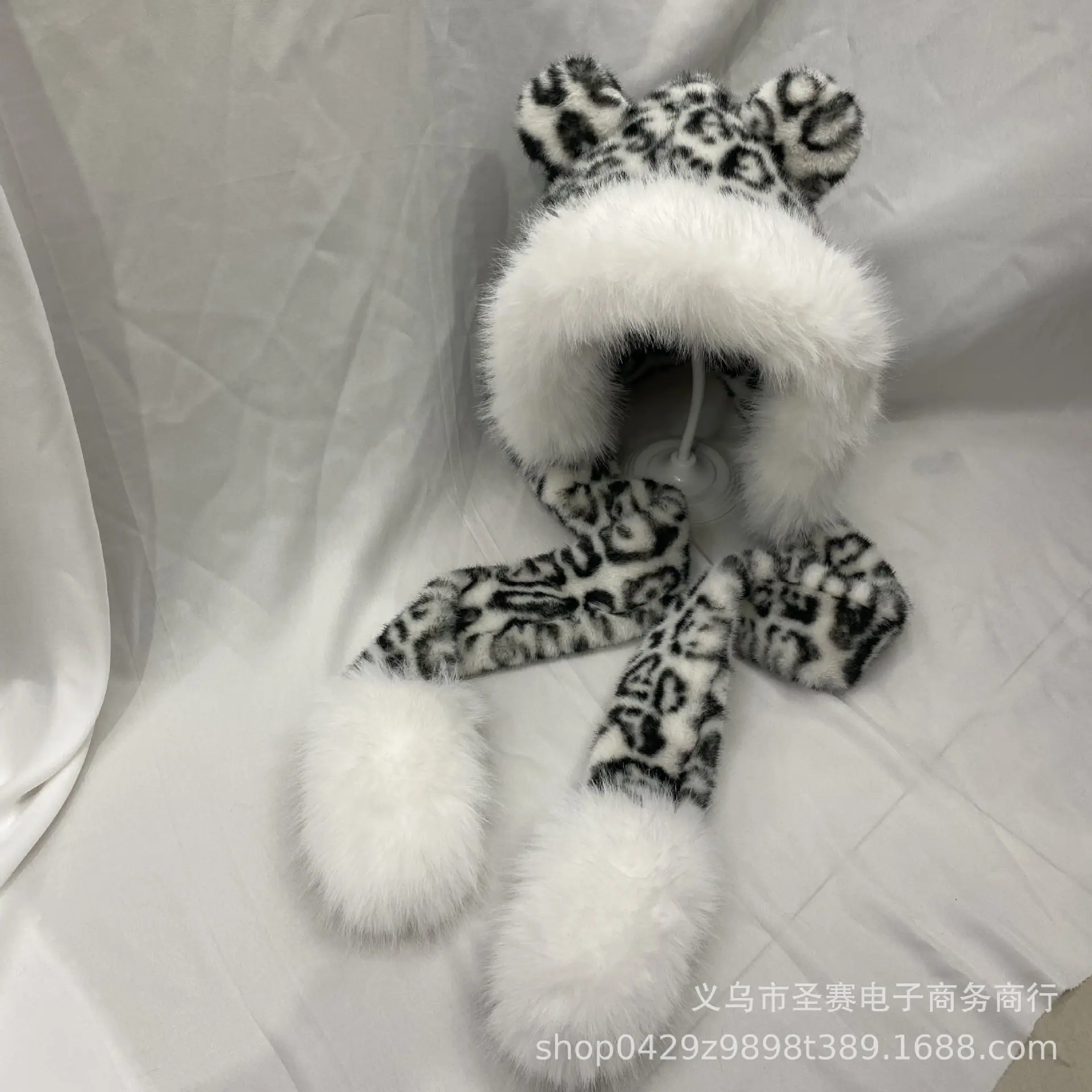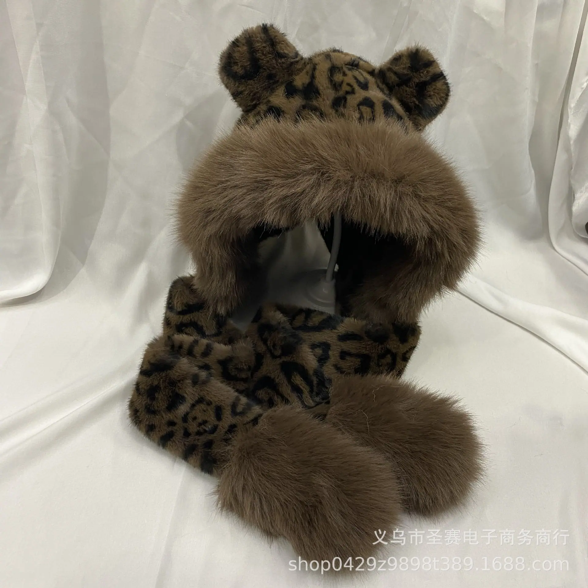 Conjunto de Gorro y Bufanda de Invierno de Piel Sintética de Visón, Estampado de Leopardo, Grueso para Protección contra el Frío, Cálido Gorro de Moda de Piel Sintética con Protección para las Orejas