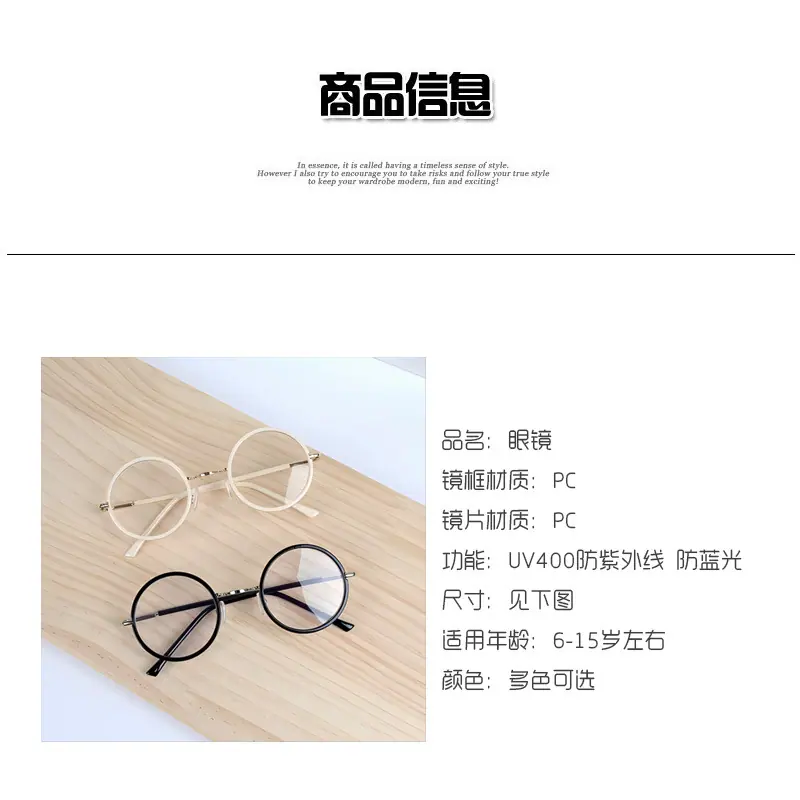 Lentes de Montura Redonda con Luz Anti-Azul para Niños, Individuales, Retro, Anti-Ultravioleta UV400, Decorativos de Moda, Sin Graduación