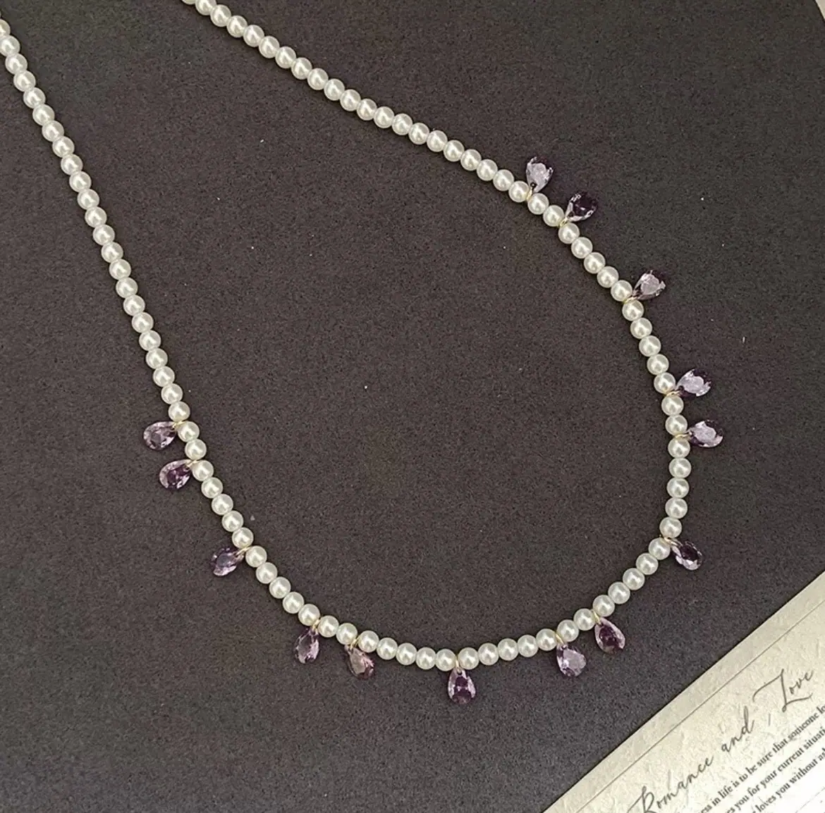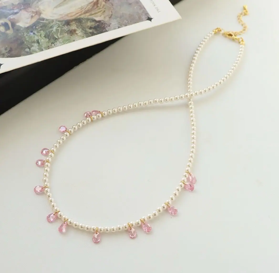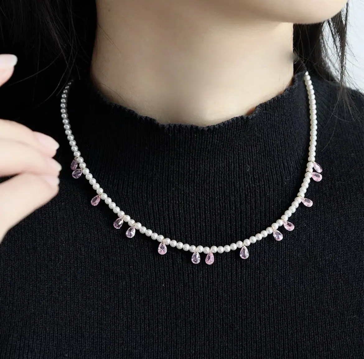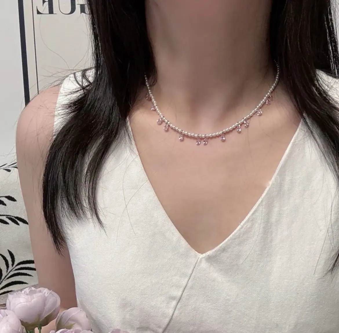 Nuevo Collar de Moda Francesa Shijia Perla Rosa Zircón Hecho a Mano con Cuentas Collar Diseño de Lujo Ligero de Alta Gama