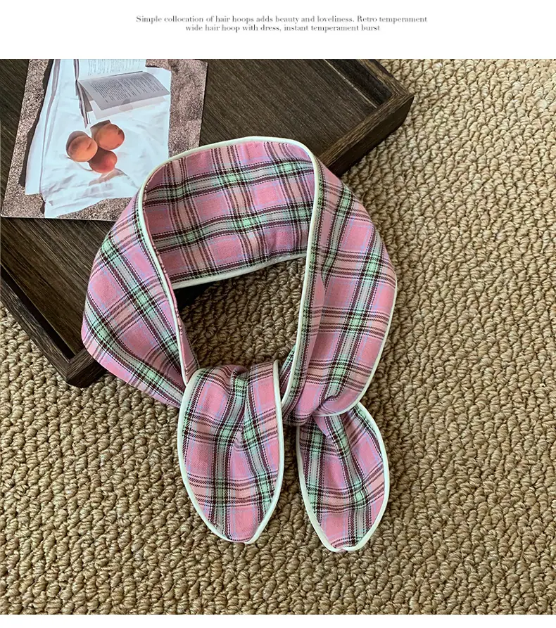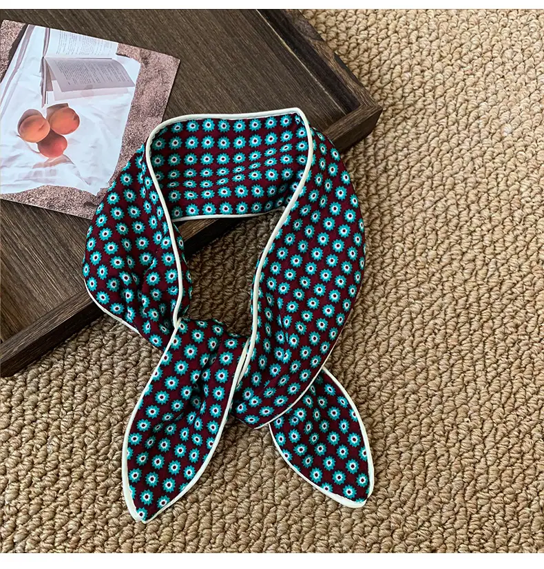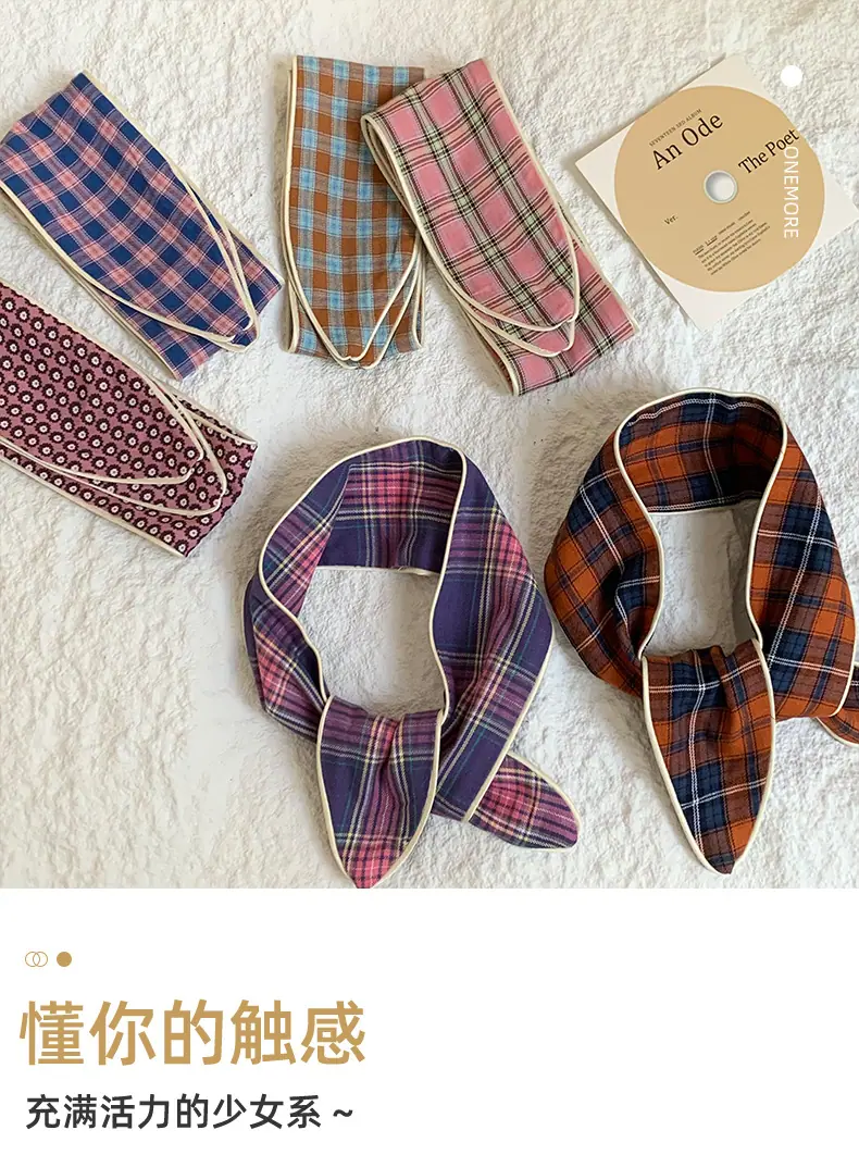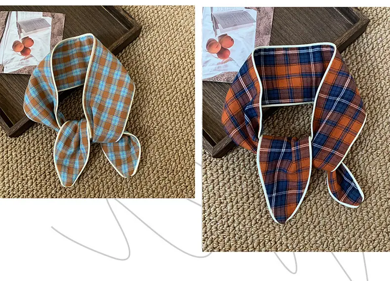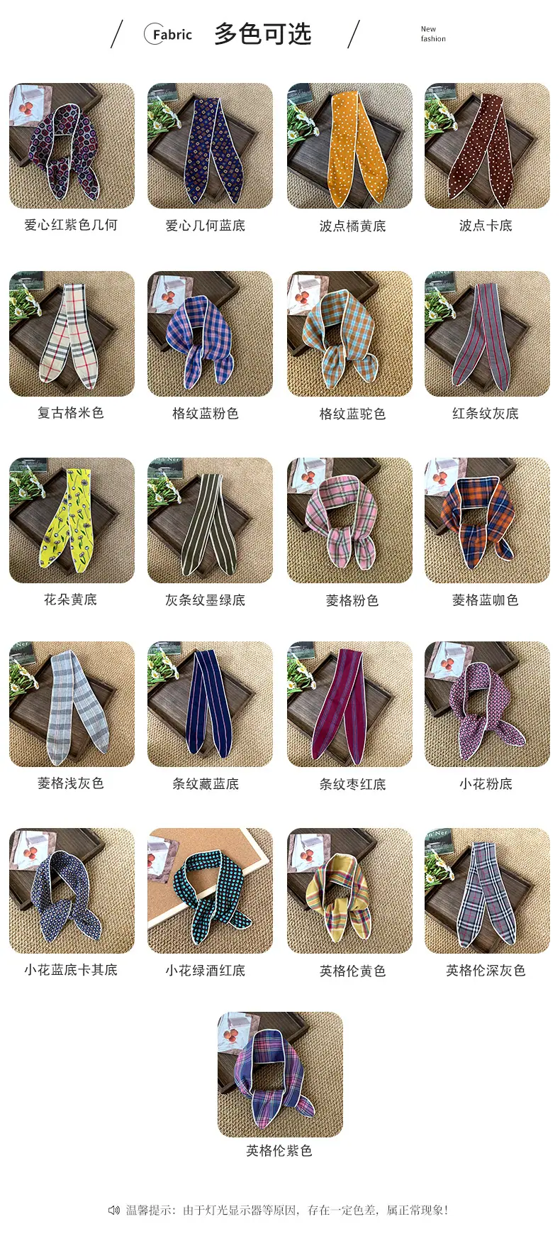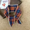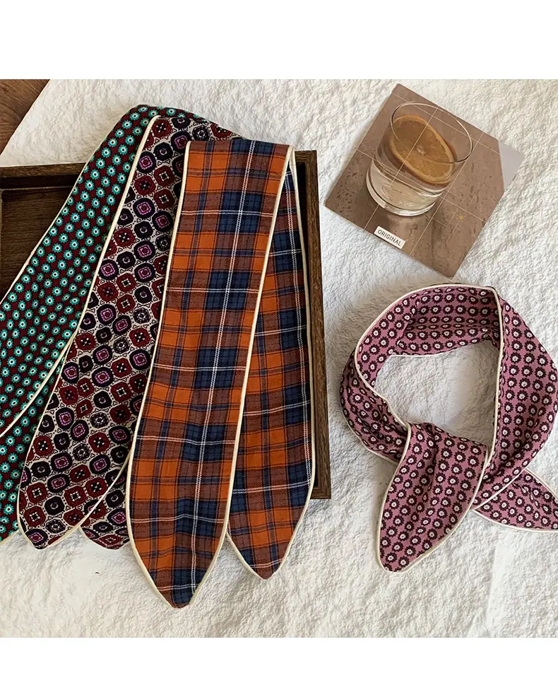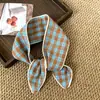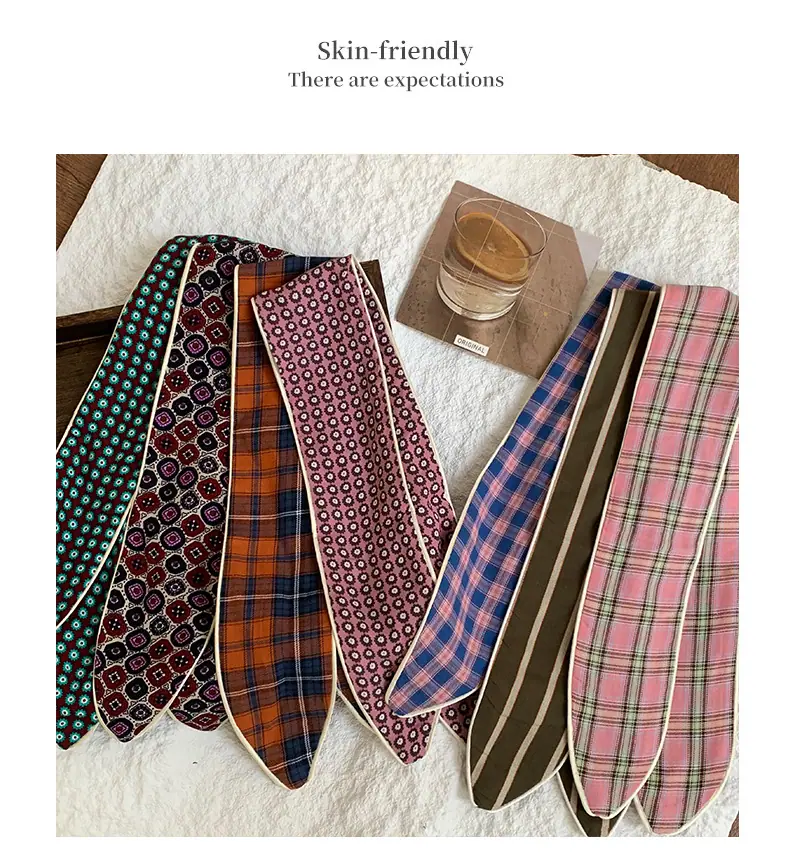 Turbante a cuadros Bufanda larga de algodón para mujer Verano Nuevo Estampado pequeño Accesorios versátiles Bufanda para el cuello Banda para el cabello Corbata