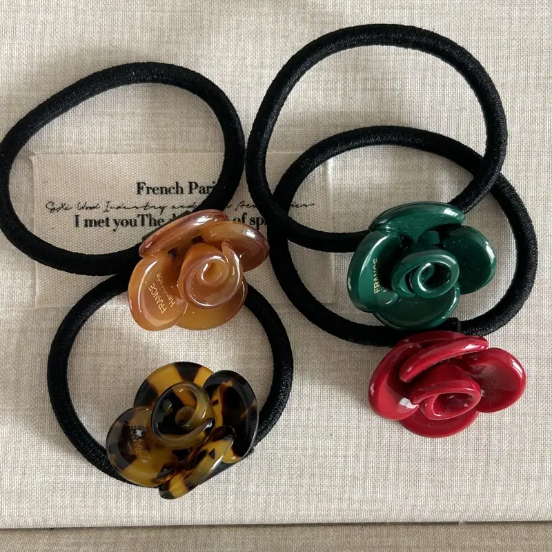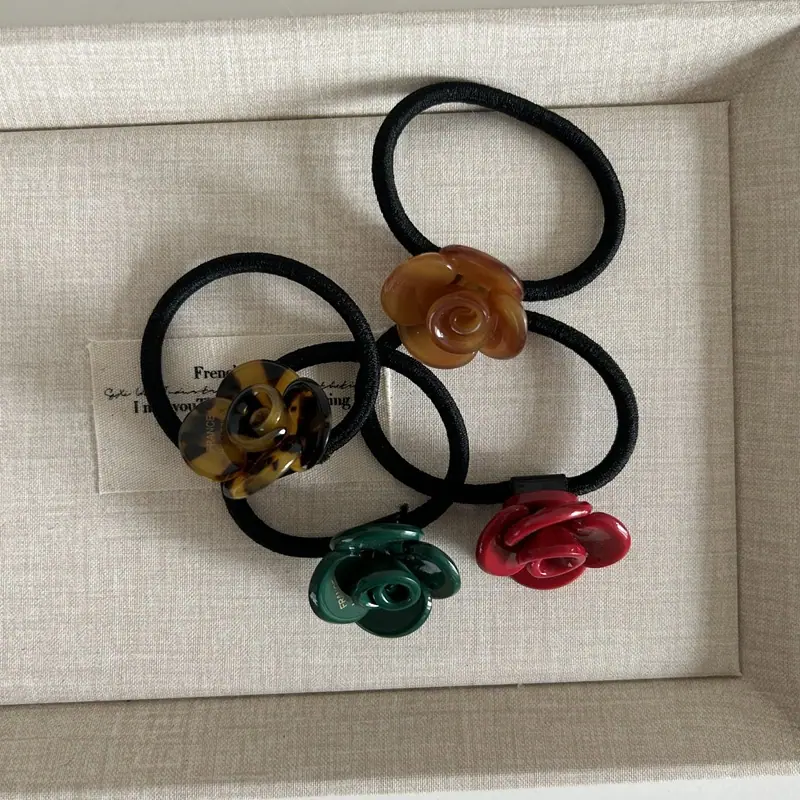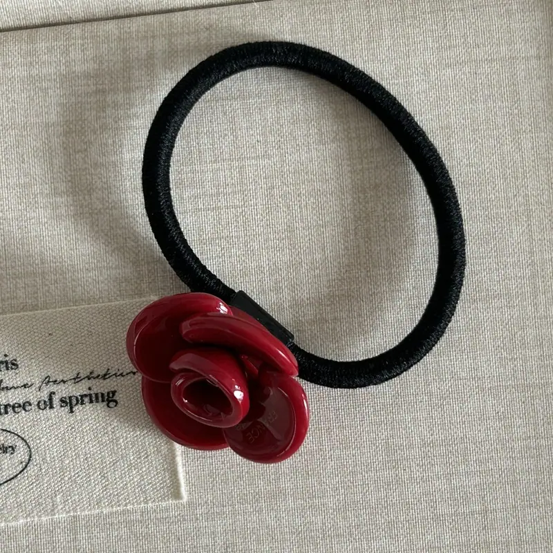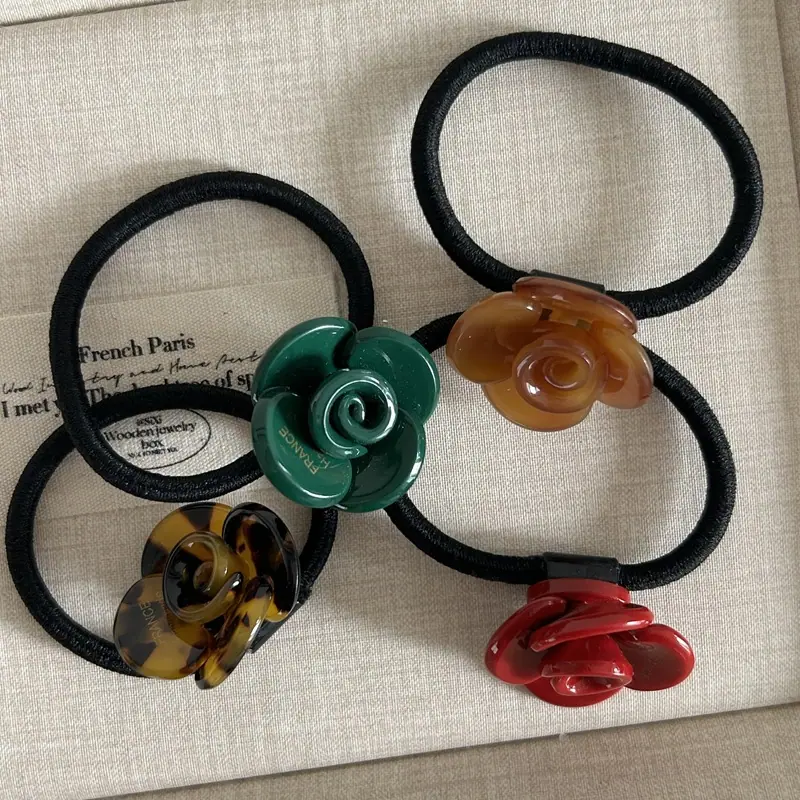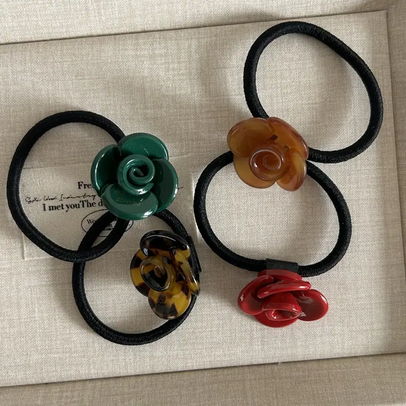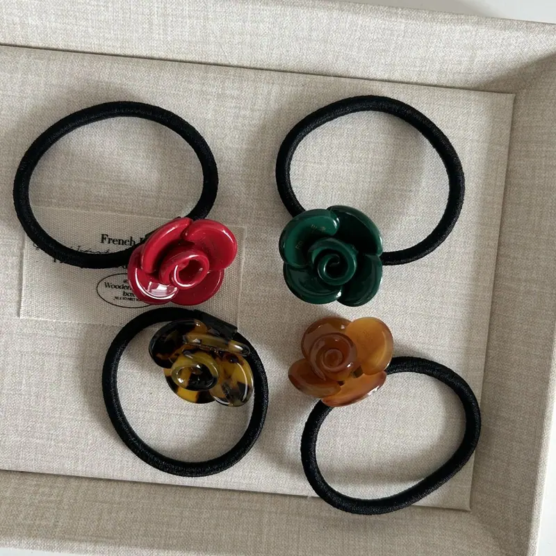 Elegante Diseño Nicho Estilo Coreano Flor Rosa de Ácido Acético Tendón de Goma Diadema Primavera y Verano Nuevo Todo Combinable Diadema para Cola de Caballo Adorno para la Cabeza