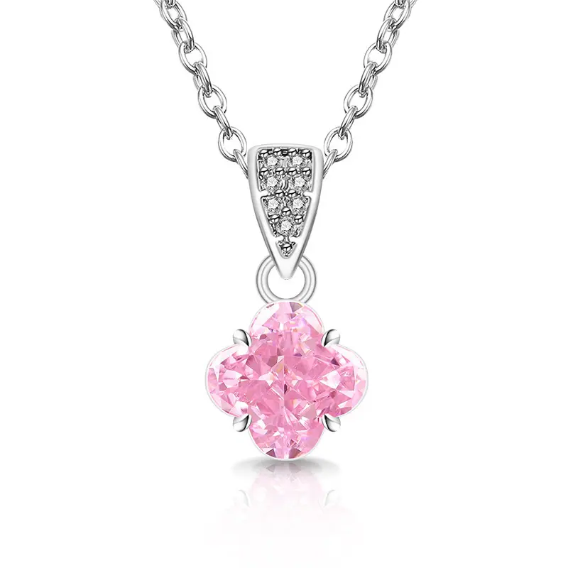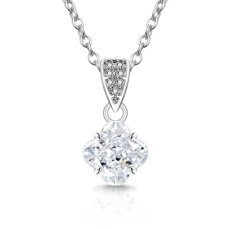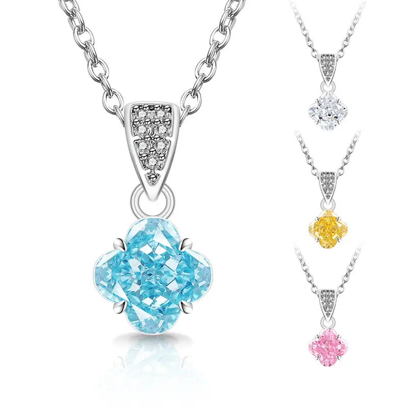 Xiaohongshu Douyin Color de Venta Caliente Gema Corte Flor de Hielo Colgante Trébol de Cuatro Hojas Incrustado con Diamante de Alto Carbono Deslumbrante Collar Trébol de la Suerte Mujer