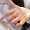 Anillo Cuadrado de Zircón Color Oro Arena Mismo Estilo de Puzuo Gold Store para Mujer, Lujo Accesible, Gama Alta, Anillo Sencillo y Versátil para Dedo Índice para Novia