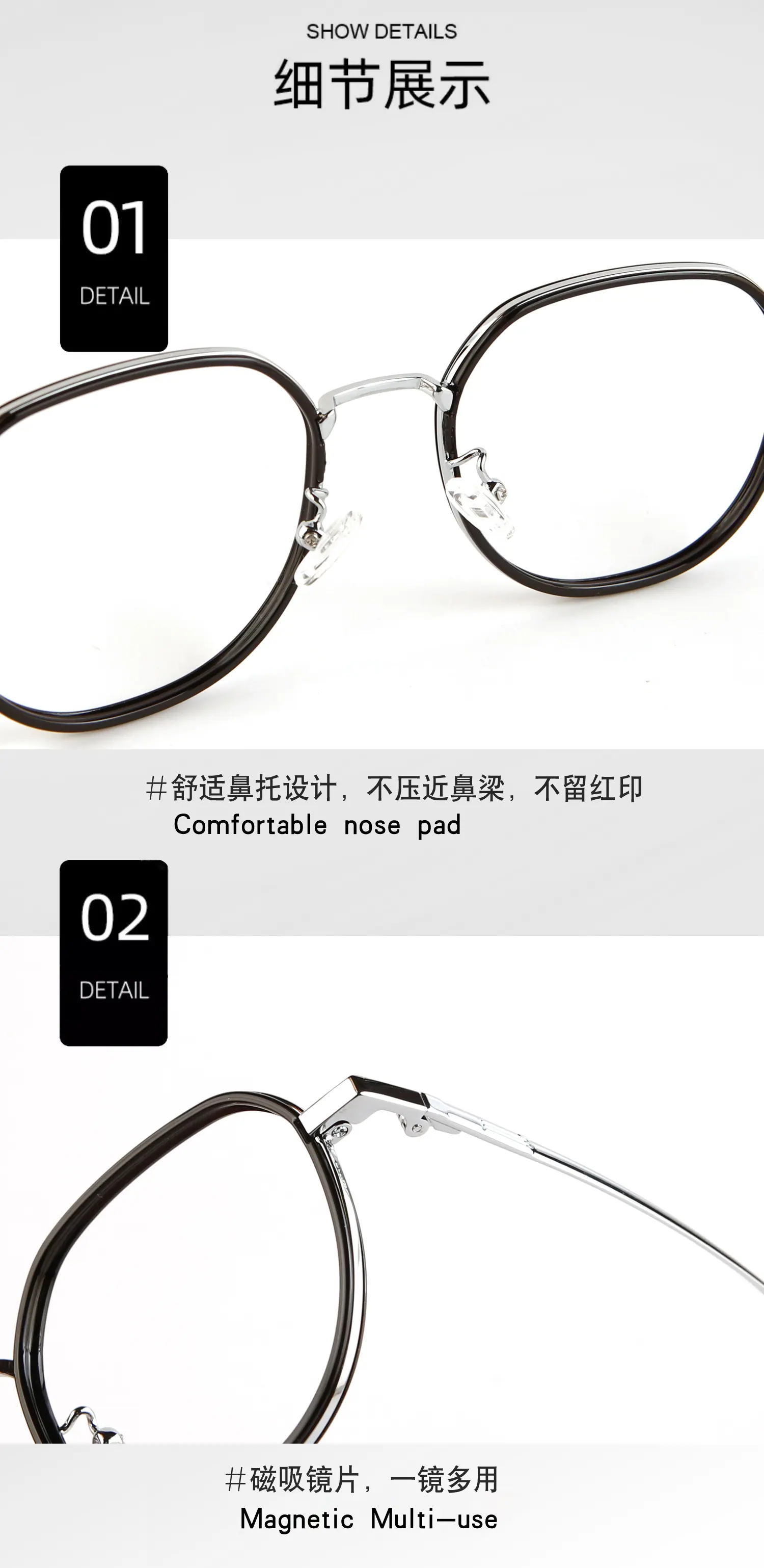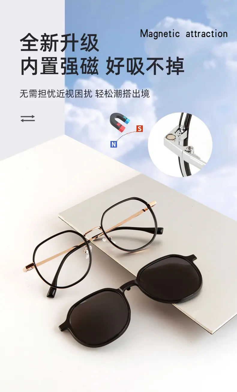 Gl2249 black gold frame + (polarized black gray film magnetic lens), Gl2249 black silver frame + (polarized bl...