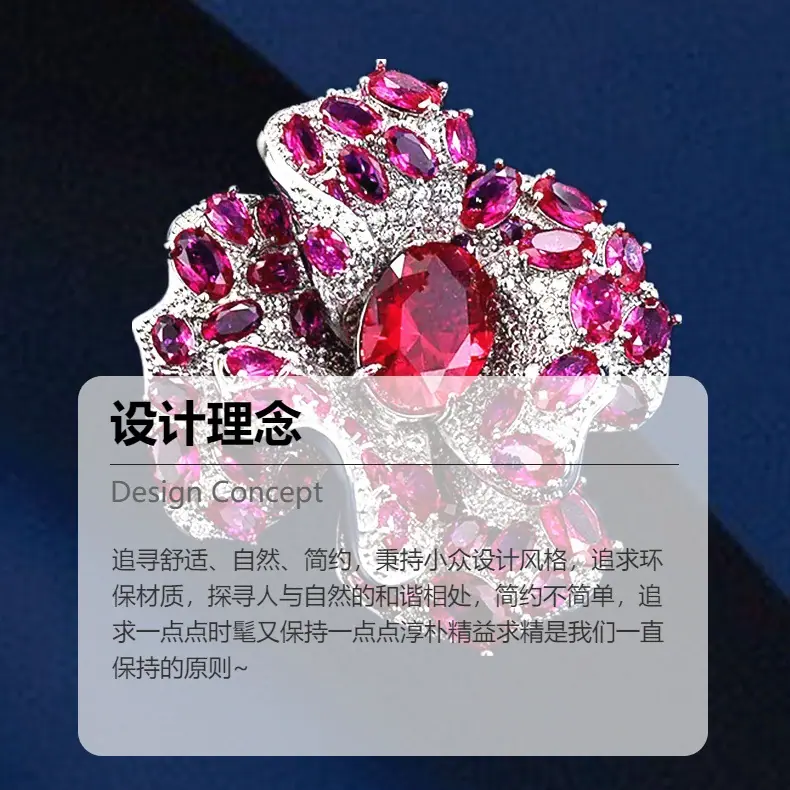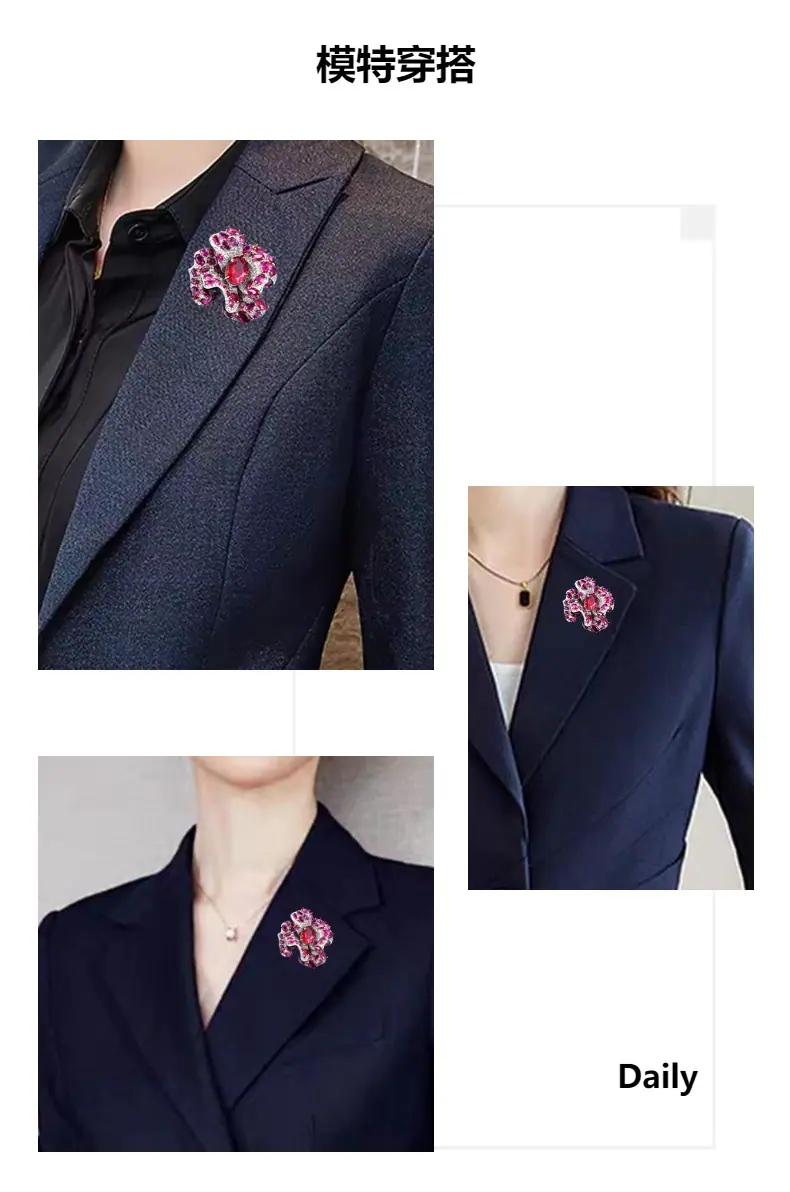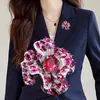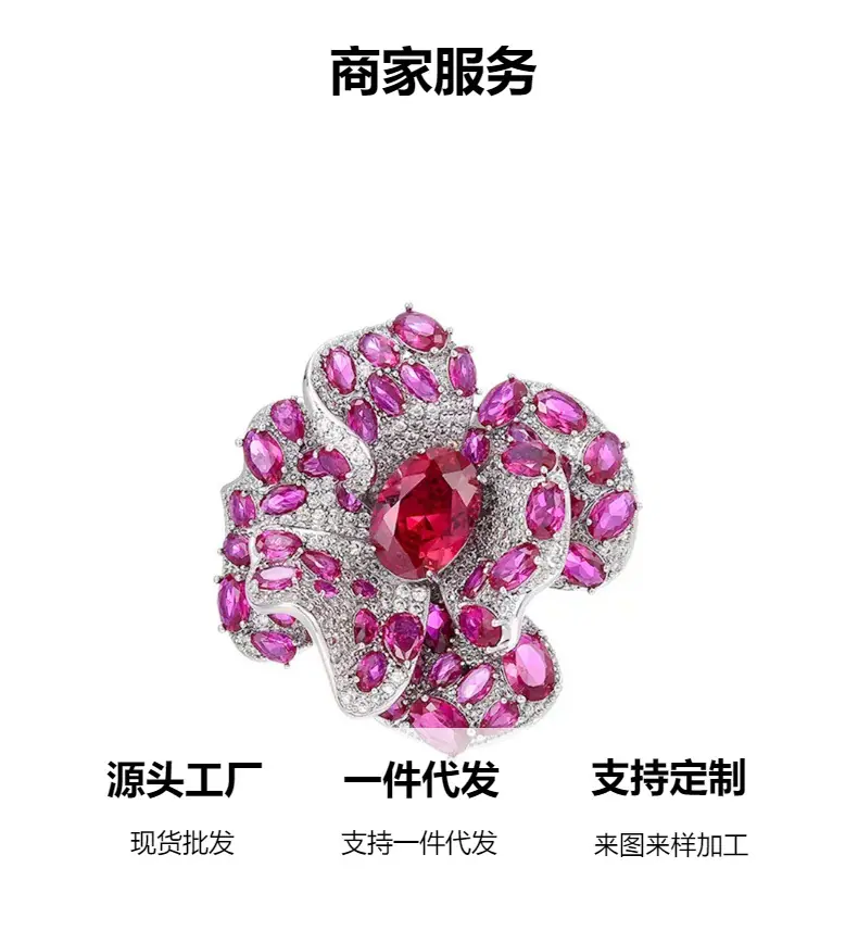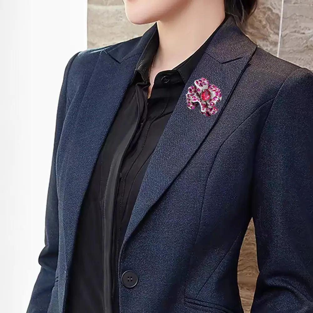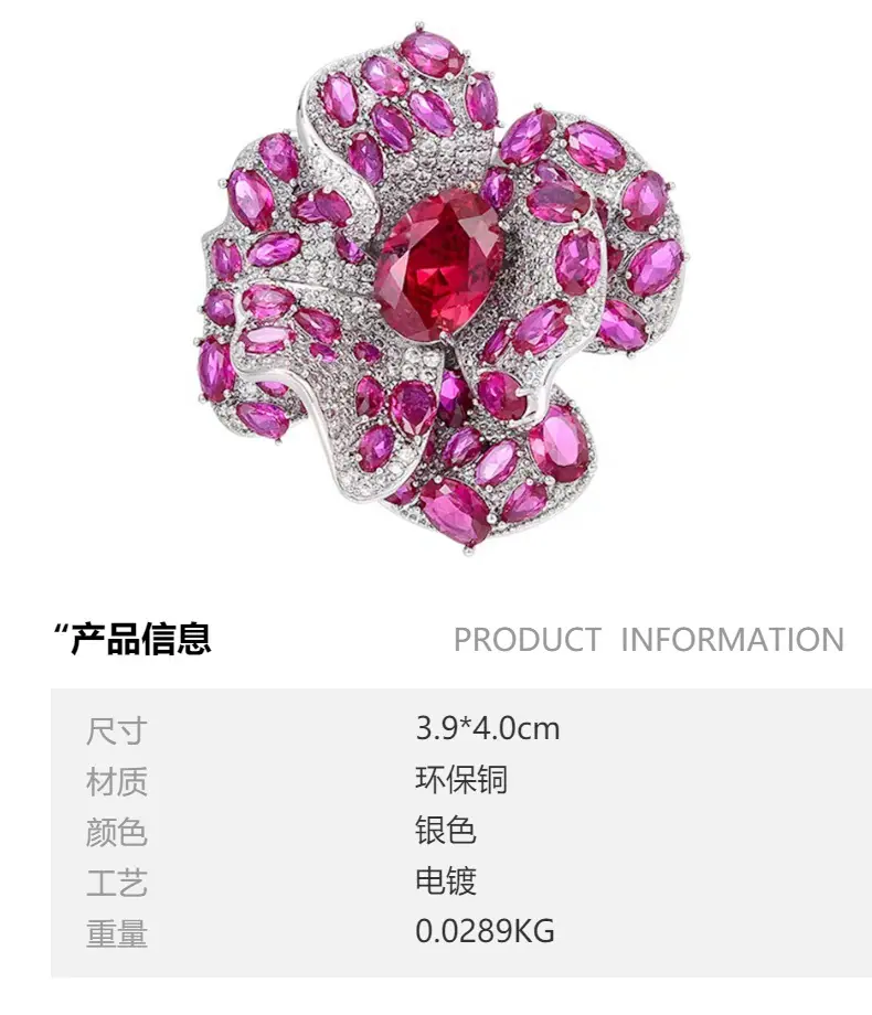 Broche Camelia de Industria Pesada Lujo Ligero de Alta Gama Incrustado Rubí Corindón Rojo Pin Colgante de Doble Uso Accesorio de Ropa Versátil