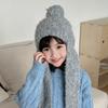Conjunto de Dos Piezas de Gorro y Bufanda de Punto de Color Sólido para Niños, Nueva Moda Otoño e Invierno Versátil Cálido Gorro con Pompón