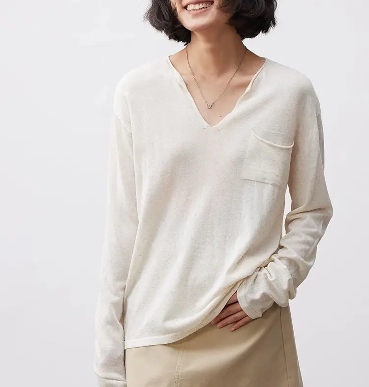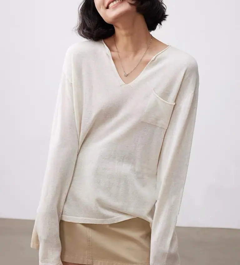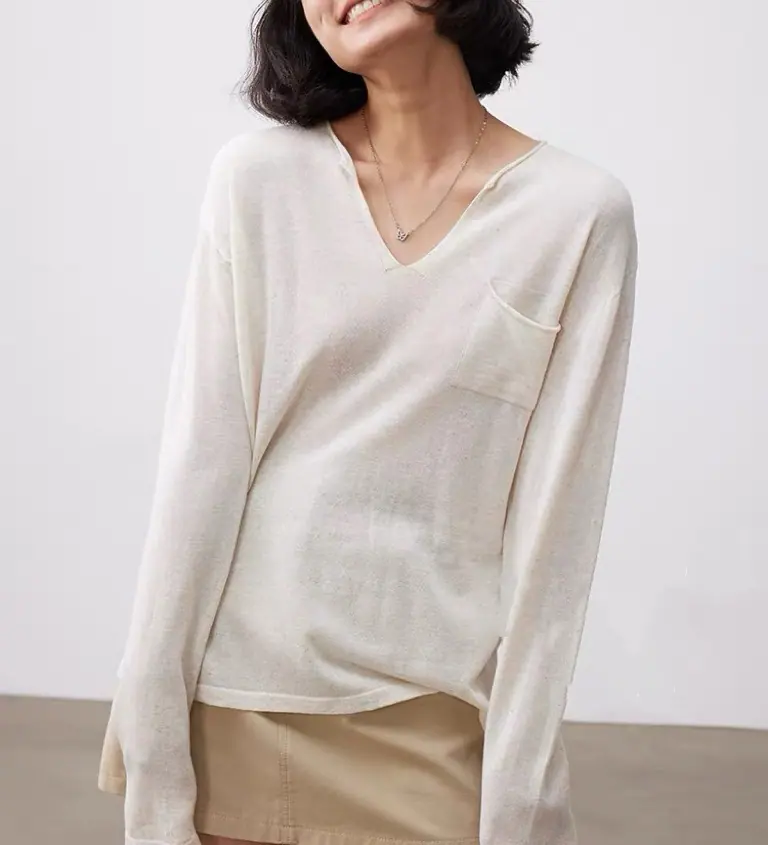 ¡Tejido de lino Tencel! Cárdigan atemporal de cuello en V para protección solar para mujer, camiseta de manga larga fina para principios de otoño, nuevo