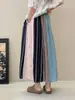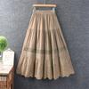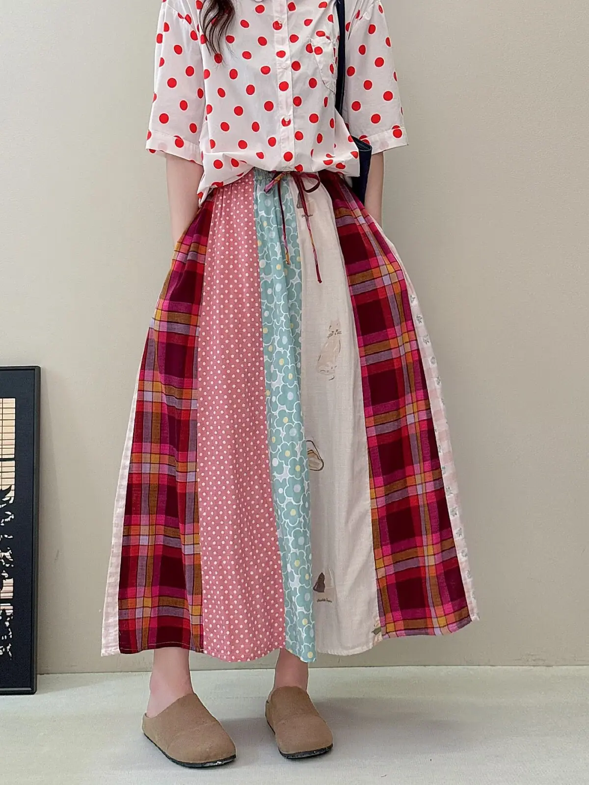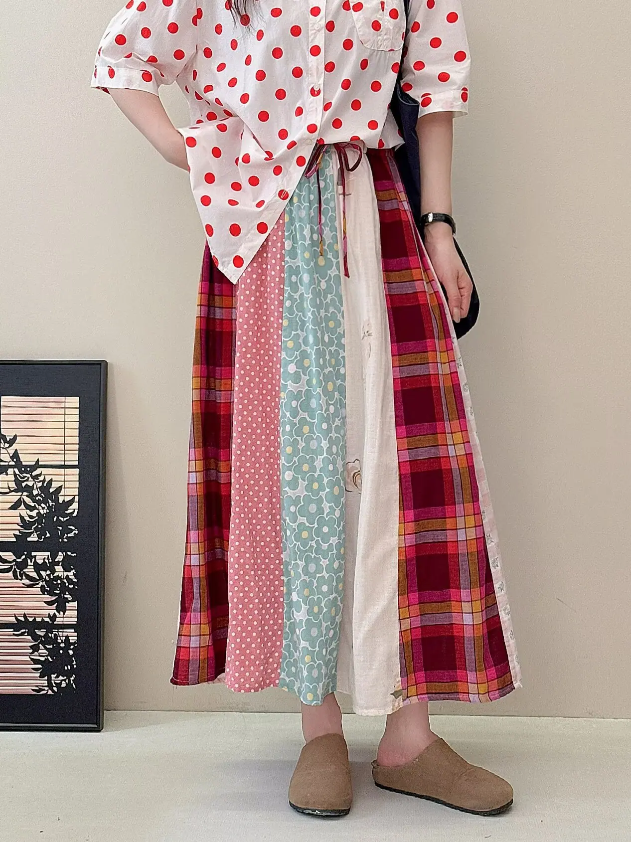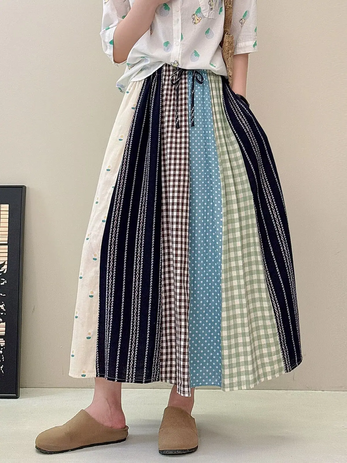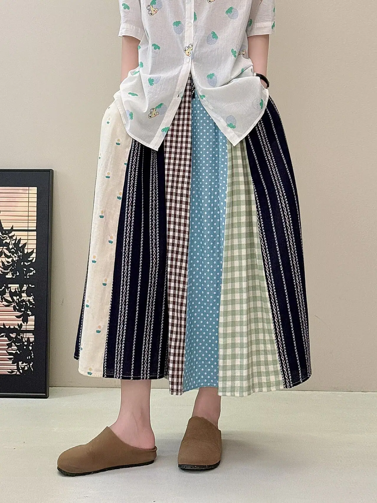 Falda de Algodón y Lino Estilo Japonés Retro Floral Pequeño Cintura Elástica Combinación de Colores Verano Casual Falda Línea A Aspecto Adelgazante