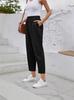 2025 Amazon Europeo y Americano Transfronterizo Primavera y Verano Negro Elástico Casual Pantalones Nueve Puntos para Mujer Nuevo Color Sólido
