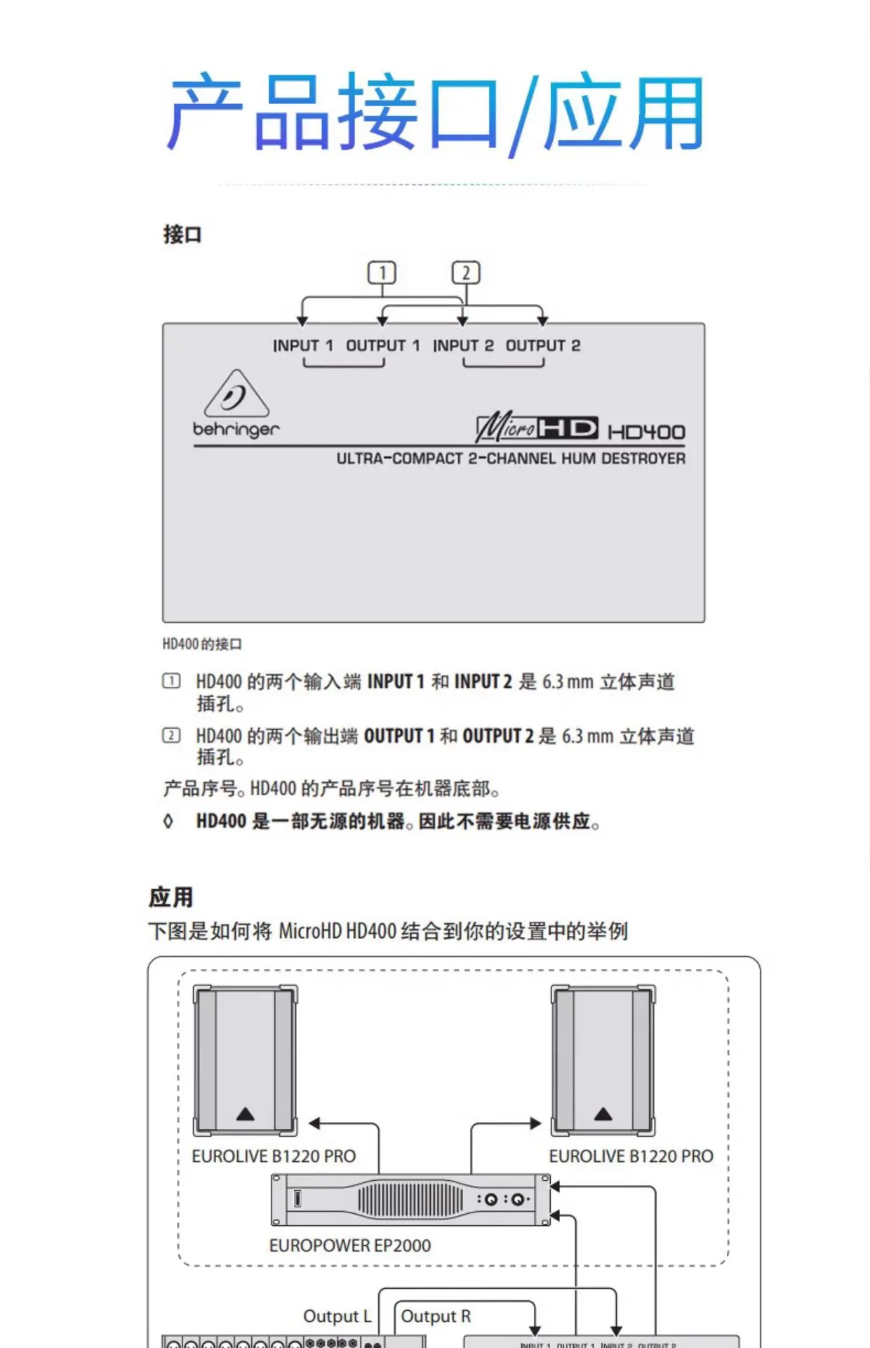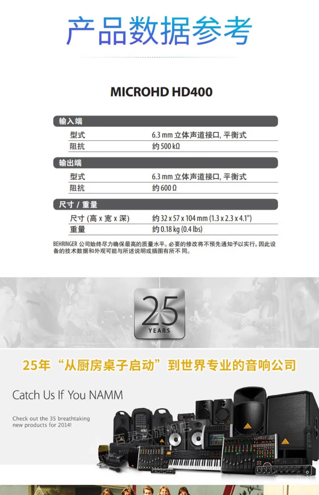 BEHRINGER/Bailing HD400 reductor de ruido de tierra profesional convertidor de señal balanceada
