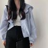 Chic Coreano Moda de Principios de Otoño Elegante Rayas Verticales Contraste Capucha Abotonada Holgada Casual Versátil Chaqueta Corta para Mujer