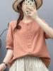 2025 Nuevo Estilo de Verano Camisa de Gasa de Algodón de Doble Botonadura y Cuello Redondo Casual Versátil Top de Manga Tres Cuartos para Mujer 66186