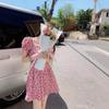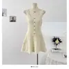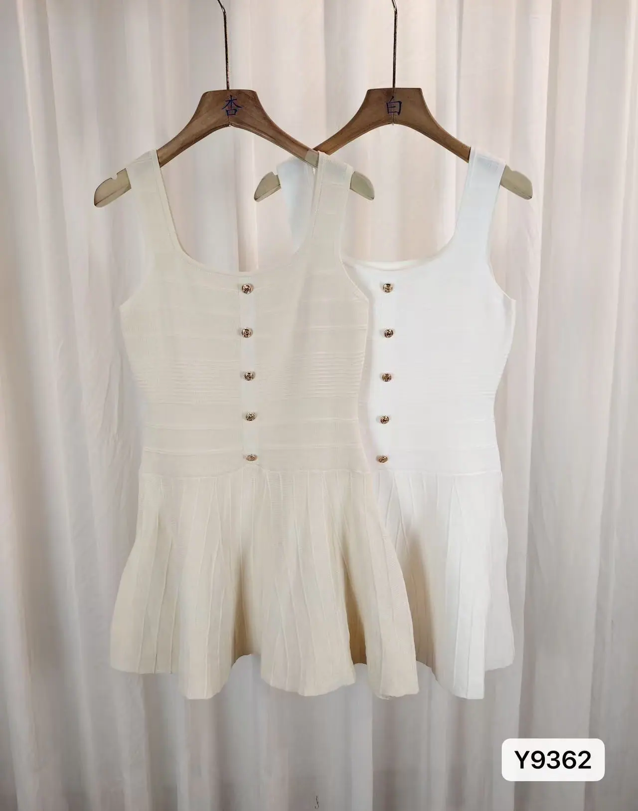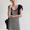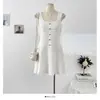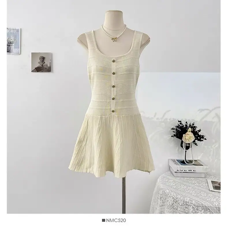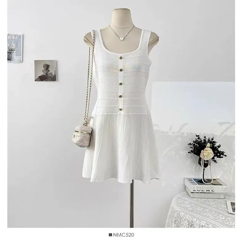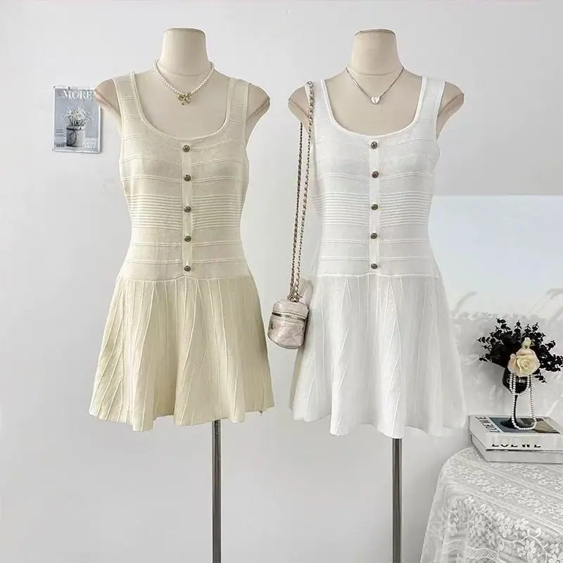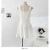 Vestido tejido de tirantes espagueti con cuello cuadrado para mujer, corte ajustado, falda corta acampanada, vibra veraniega, vestidito, figura petite, temperamento noble