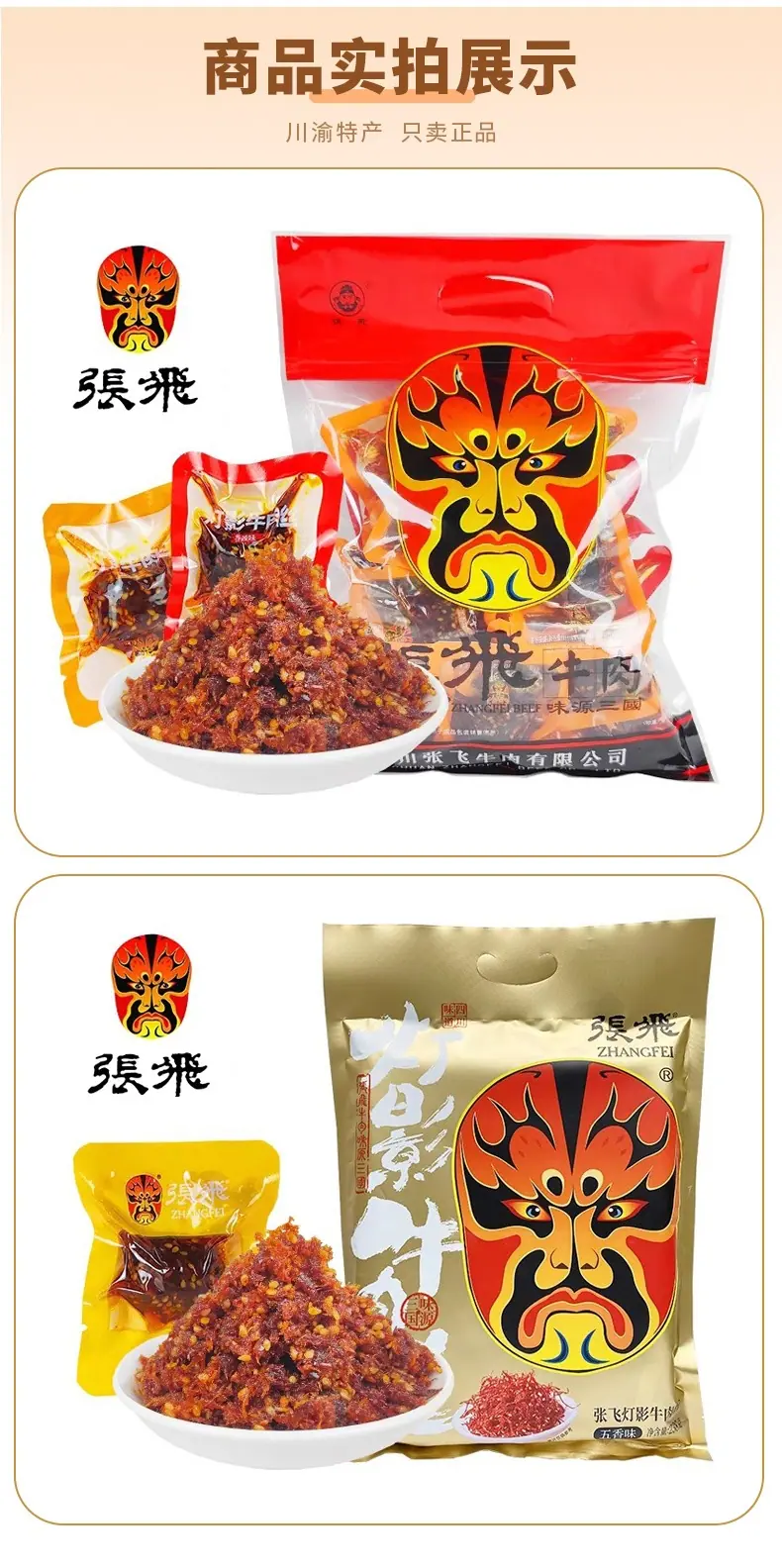 Tiras de Res Sichuan Zhang Fei Dangying Picantes Cinco Especias Cecina Snack a Granel Paquete de Regalo para Ocio de Chengdu