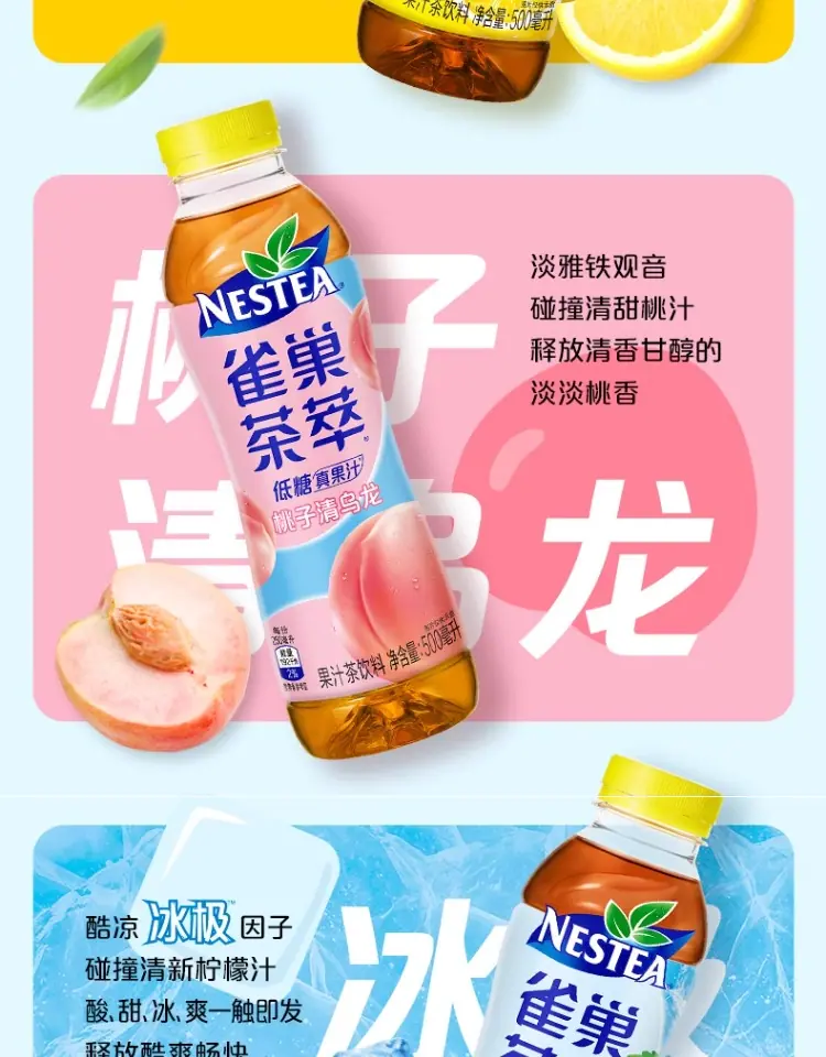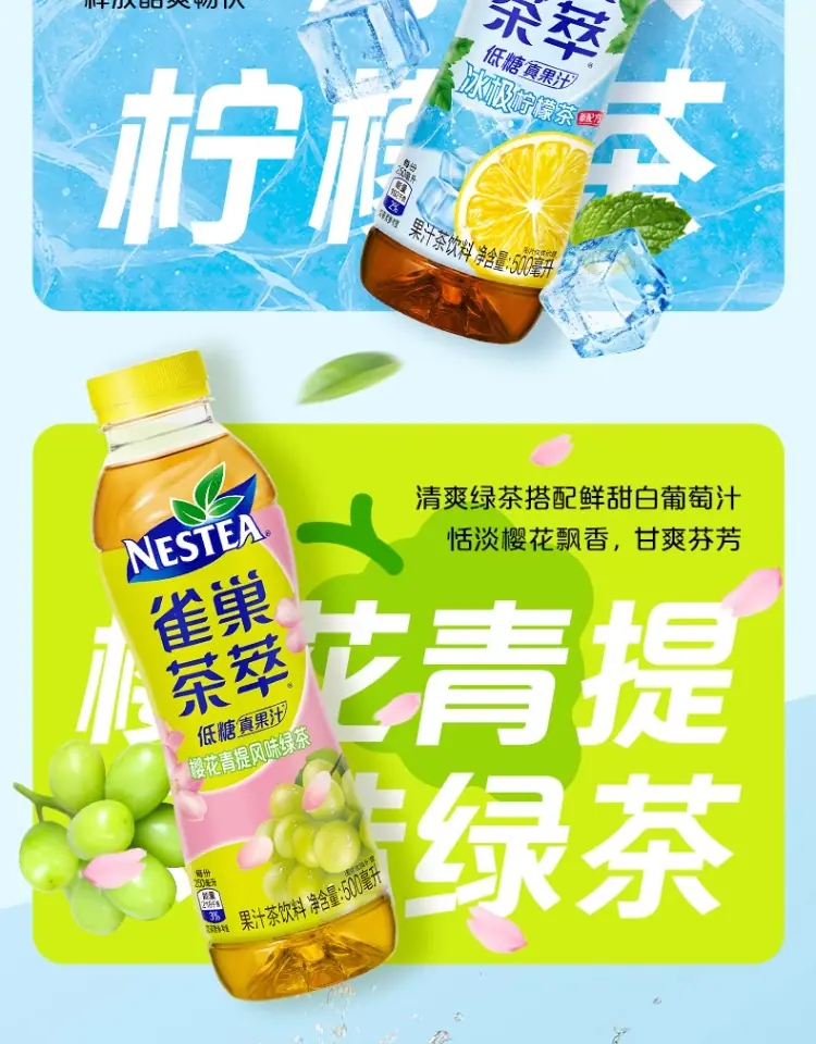 Cherry Blossom Green Grape Tea 500ml*5 bottles, Peach Qing Oolong 500ml*5 bottles, Iced Lemon Tea 500ml*5 bott...