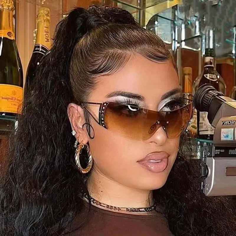 Moda Europea y Americana Gafas de Sol Integradas a Prueba de Viento y Anti Luz Azul para Mujer Gafas de Sol Estilo Y2K Millennium Gafas para Mujer Venta al por Mayor Transfronteriza