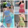Traje de Baño Mujer Aguas Termales Sexy Nuevo Estilo Pecho Pequeño Color Sólido Bandeau Sentido Blanqueador Bikini de Gama Alta 2024 Dos Piezas Cordón