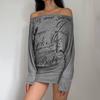 Vestido Asimétrico Estilo Ins Perezoso con Estampado de Letras en la Espalda Sexy Holgado Estilizado Ajustado a la Cadera Un Hombro Falda Corta