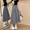 Falda de Cuadros Negros Delgada de Verano para Mujer 2025 Nueva de Cintura Alta con Aspecto Adelgazante Casual A-Line Falda Larga para Personas Pequeñas