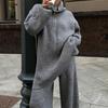 Suéter de Punto Europeo y Americano 2025 Traje Holgado para Mujer Traje de Pantalón Ancho de Manga Larga con Solapa Nuevo de Otoño e Invierno Europeo y Americano