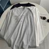 Camiseta de Manga Larga con Estampado de Letras Estilo Occidental Coreano Camiseta Básica Algodón Puro Principios de Otoño Marca de Moda Casual Americano Top Versátil para Mujer