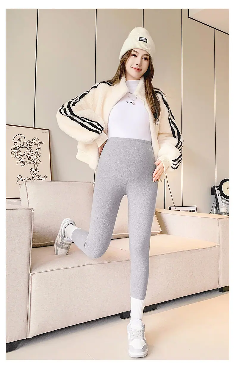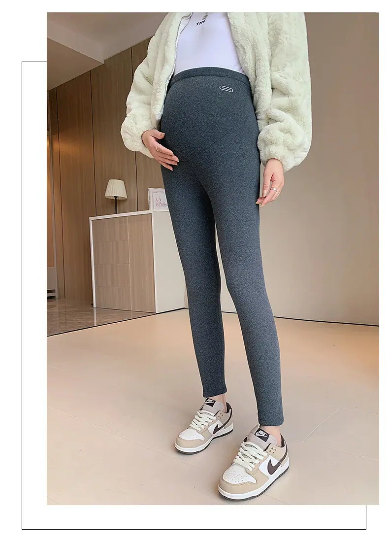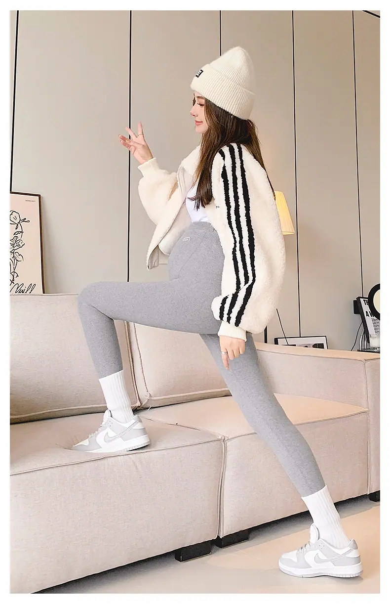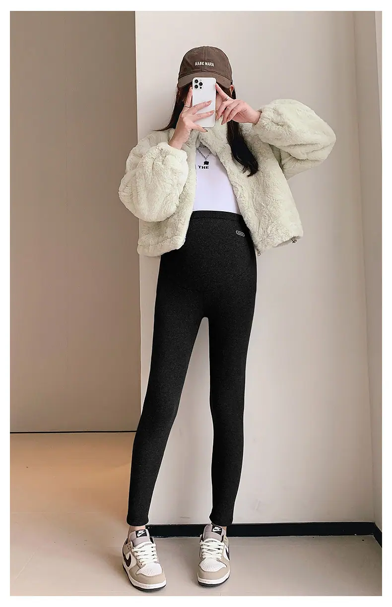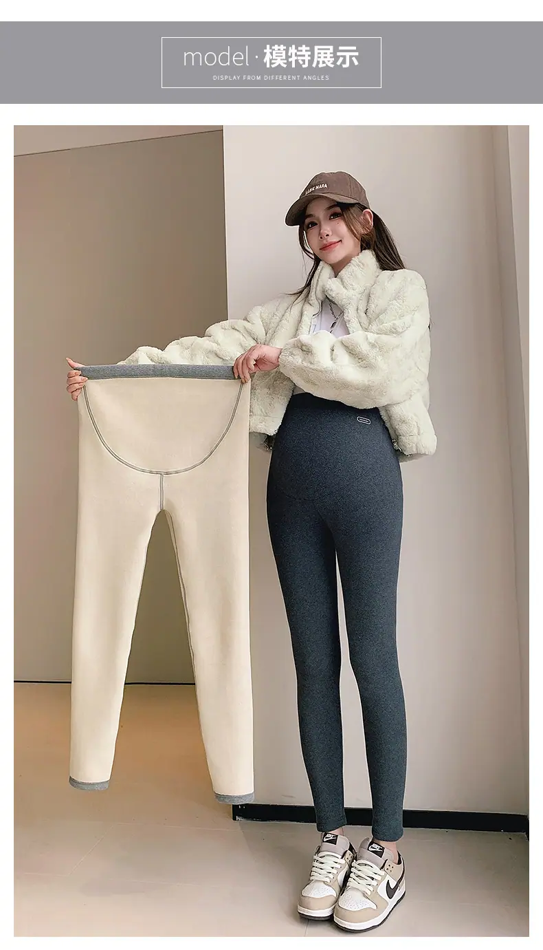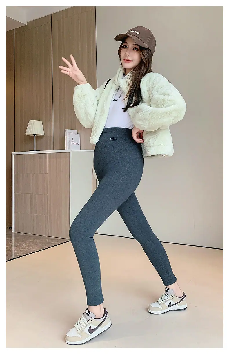 Leggings para Mujer Embarazada Otoño e Invierno Nuevo Estilo Pantalones de Maternidad Invierno Ropa Exterior Forro Polar Engrosado Cálido Algodón