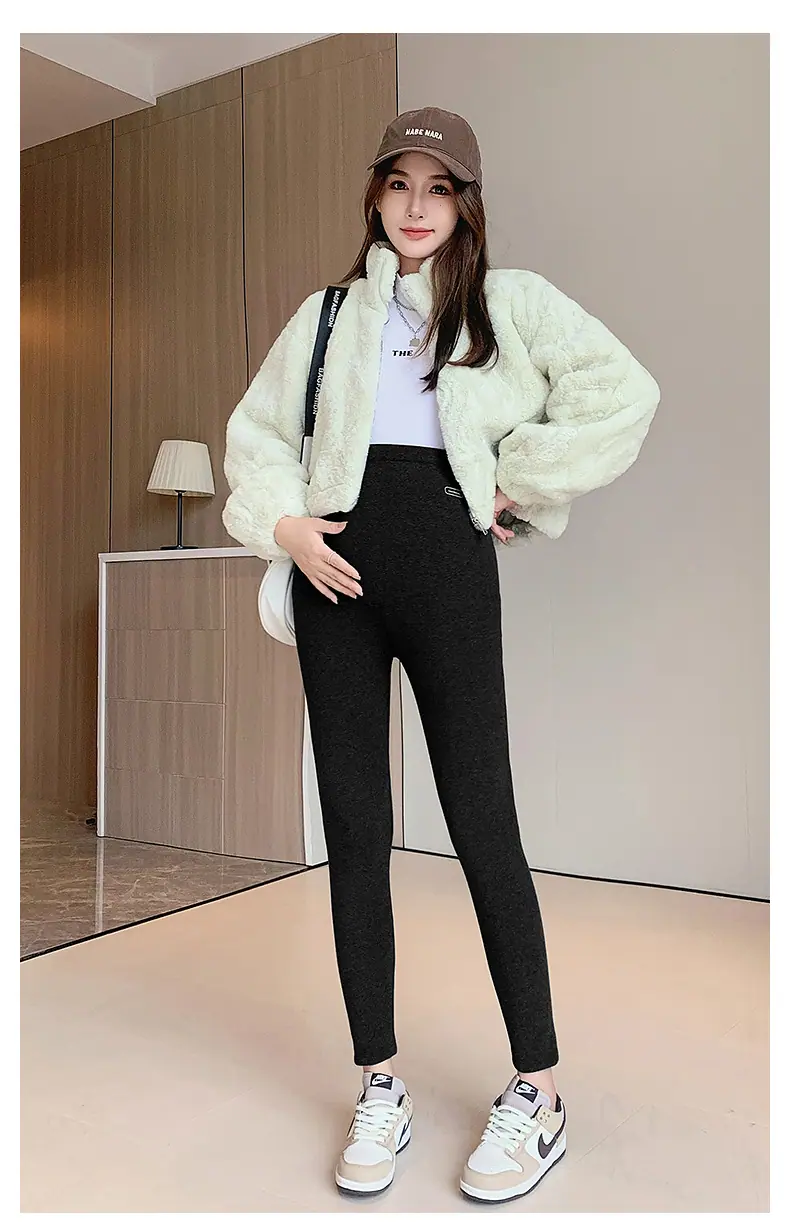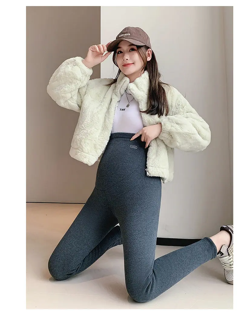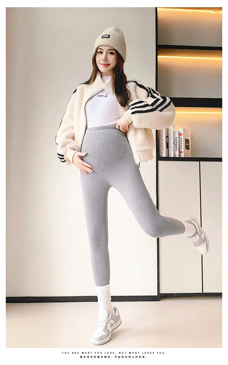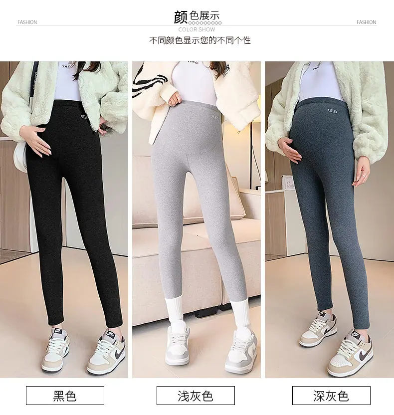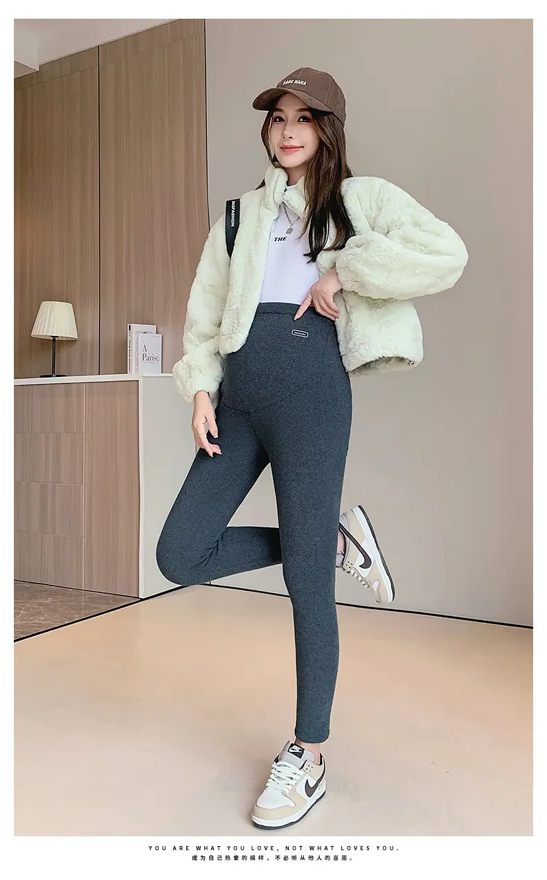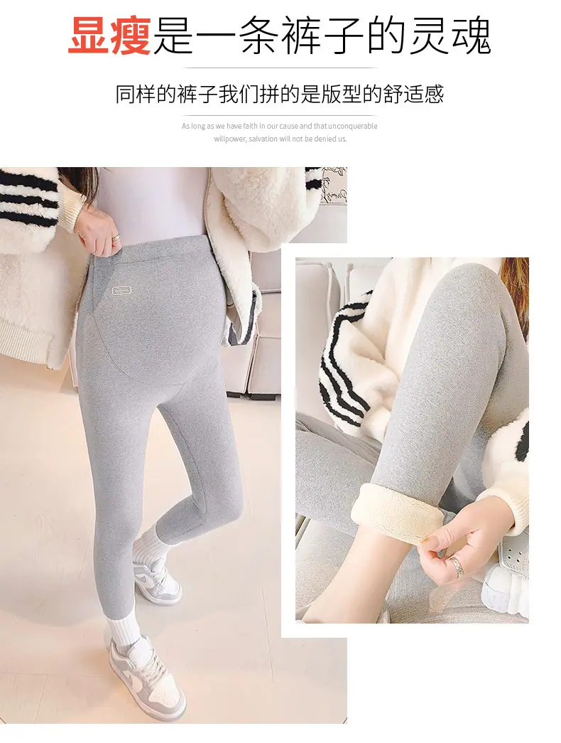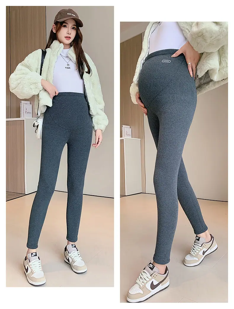 Leggings para Mujer Embarazada Otoño e Invierno Nuevo Estilo Pantalones de Maternidad Invierno Ropa Exterior Forro Polar Engrosado Cálido Algodón