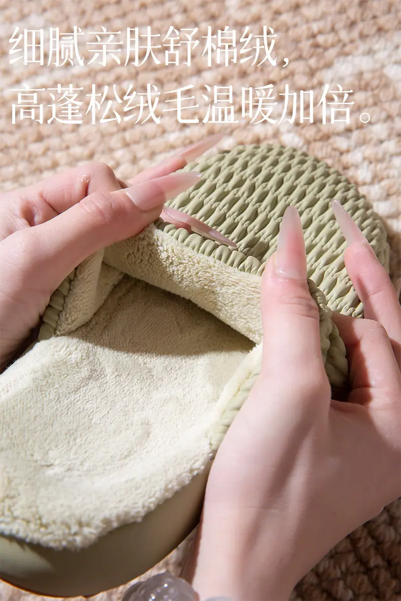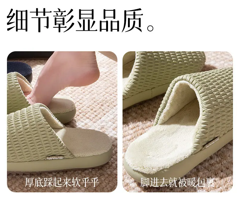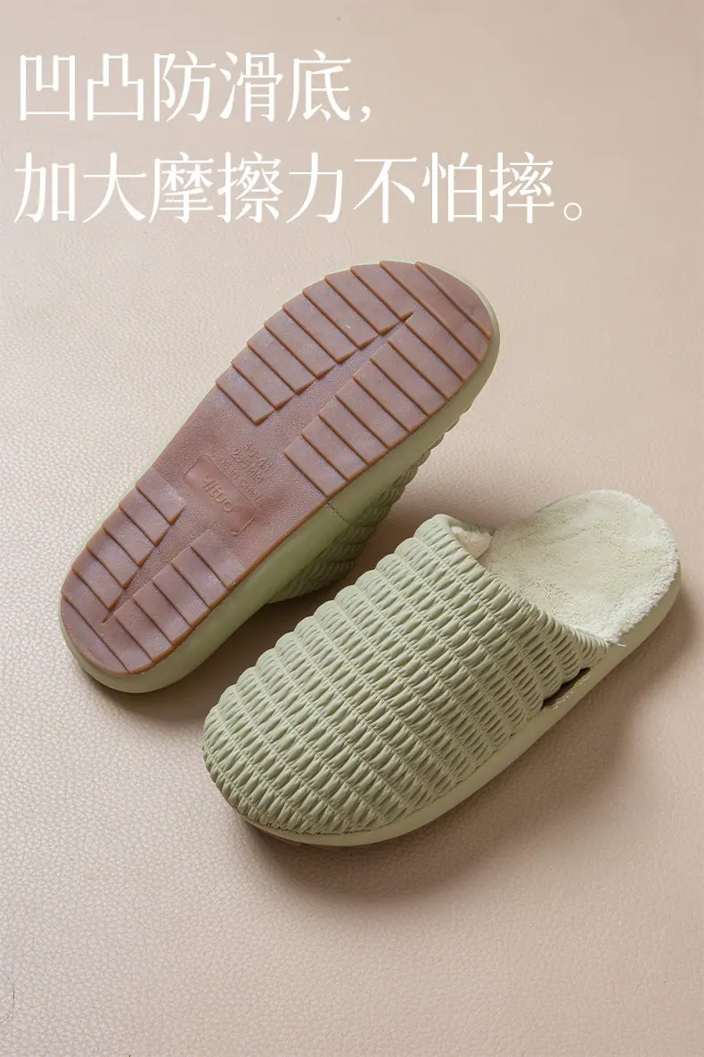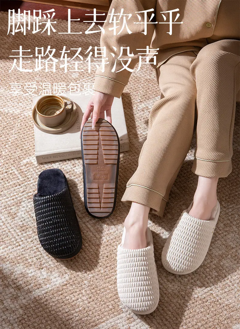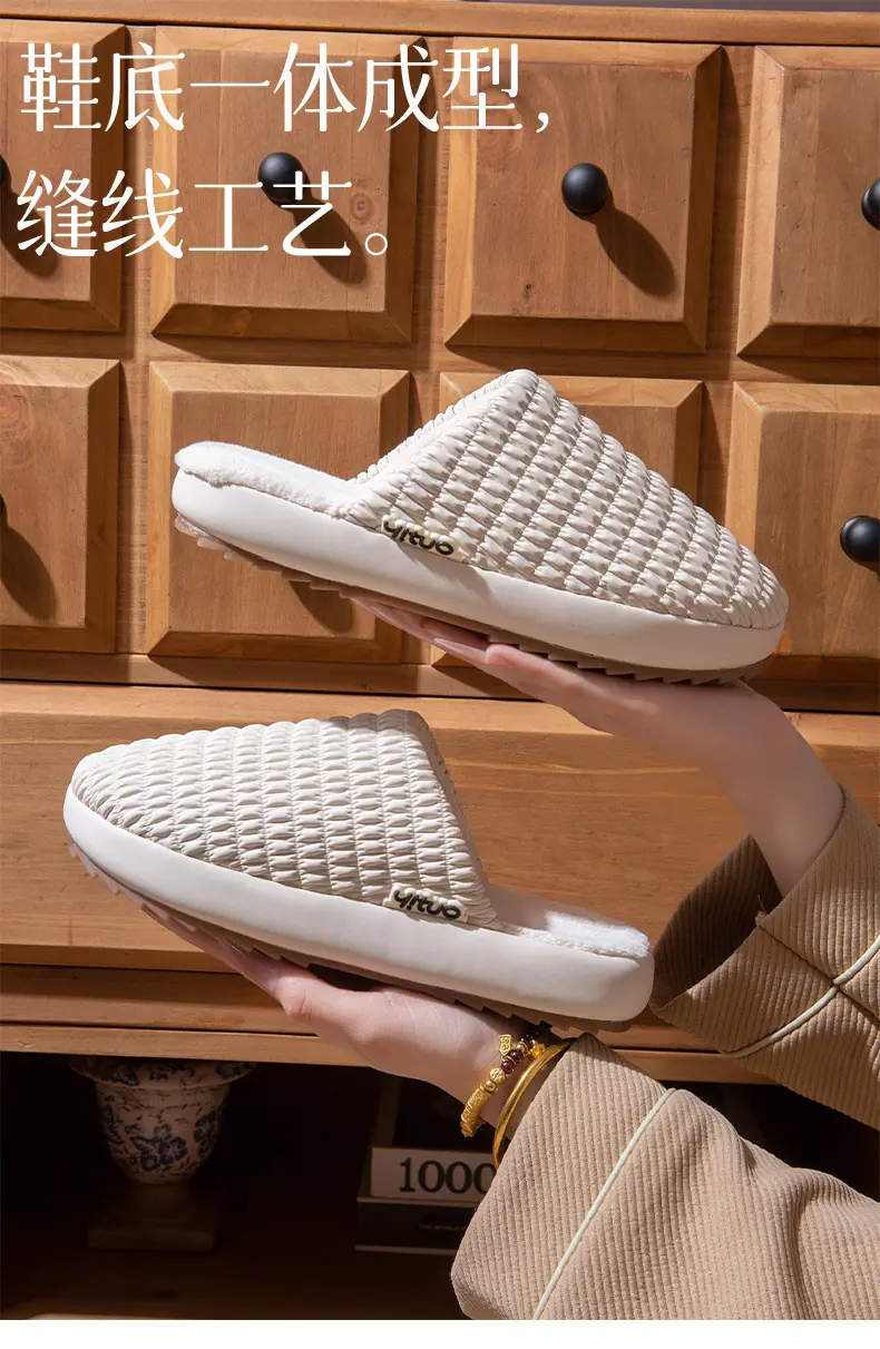 Zapatos de algodón nuevos para mujer invierno hogar interior pisando mierda sensación suela gruesa antideslizante cálido hogar pareja pantuflas de algodón de felpa para hombre