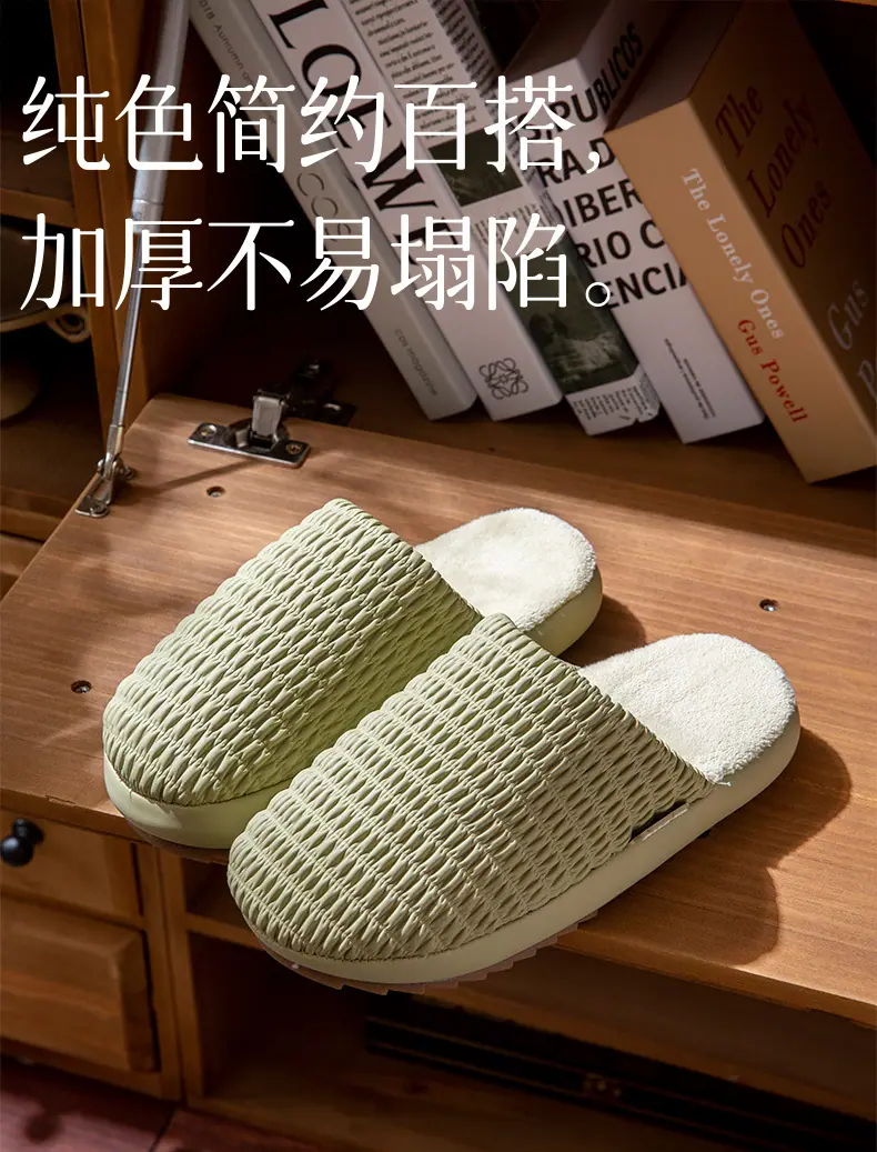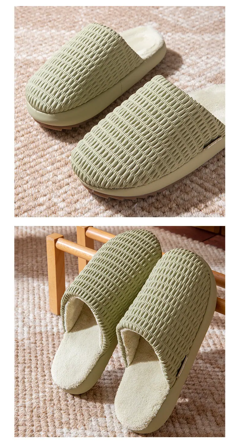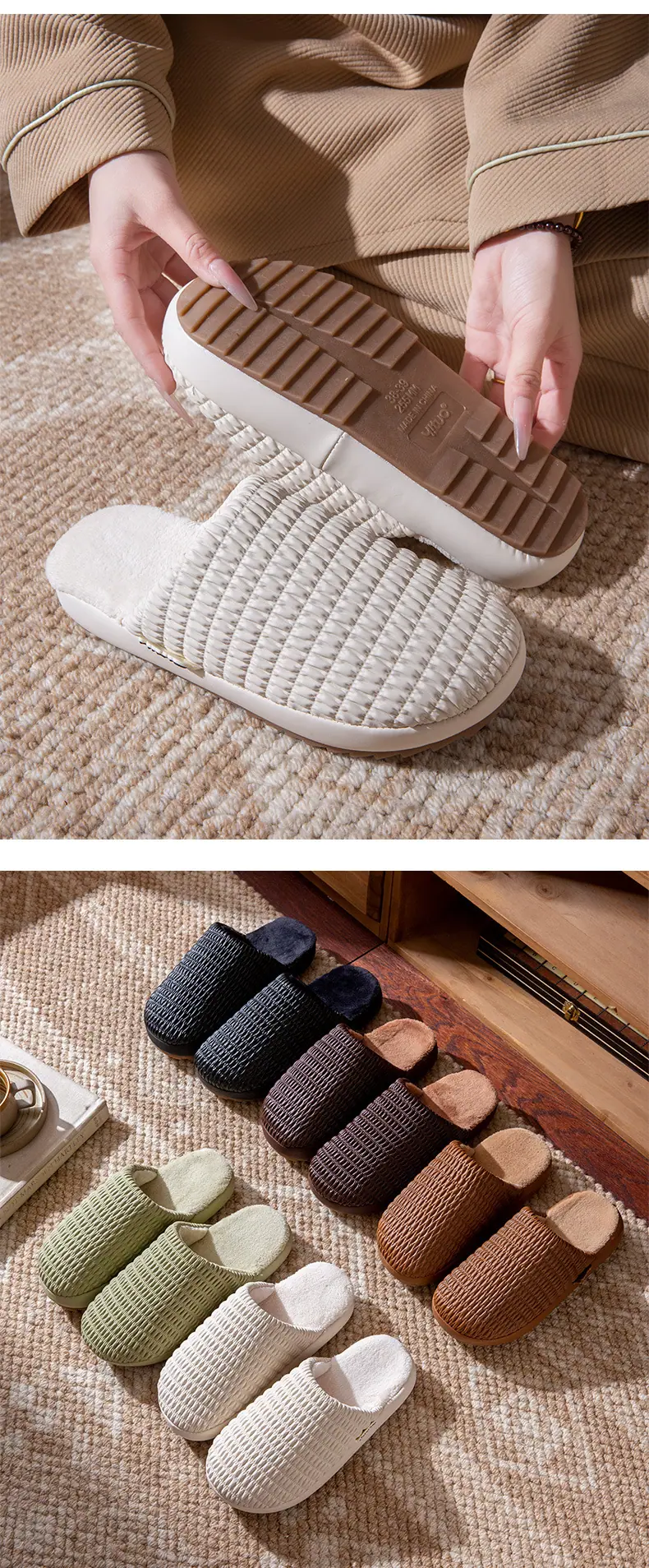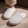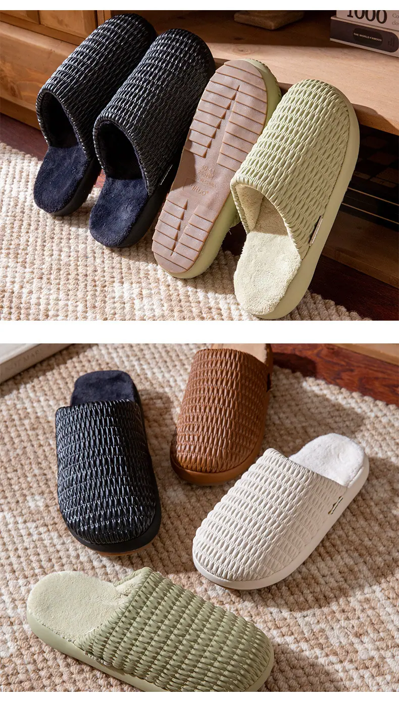 Zapatos de algodón nuevos para mujer invierno hogar interior pisando mierda sensación suela gruesa antideslizante cálido hogar pareja pantuflas de algodón de felpa para hombre