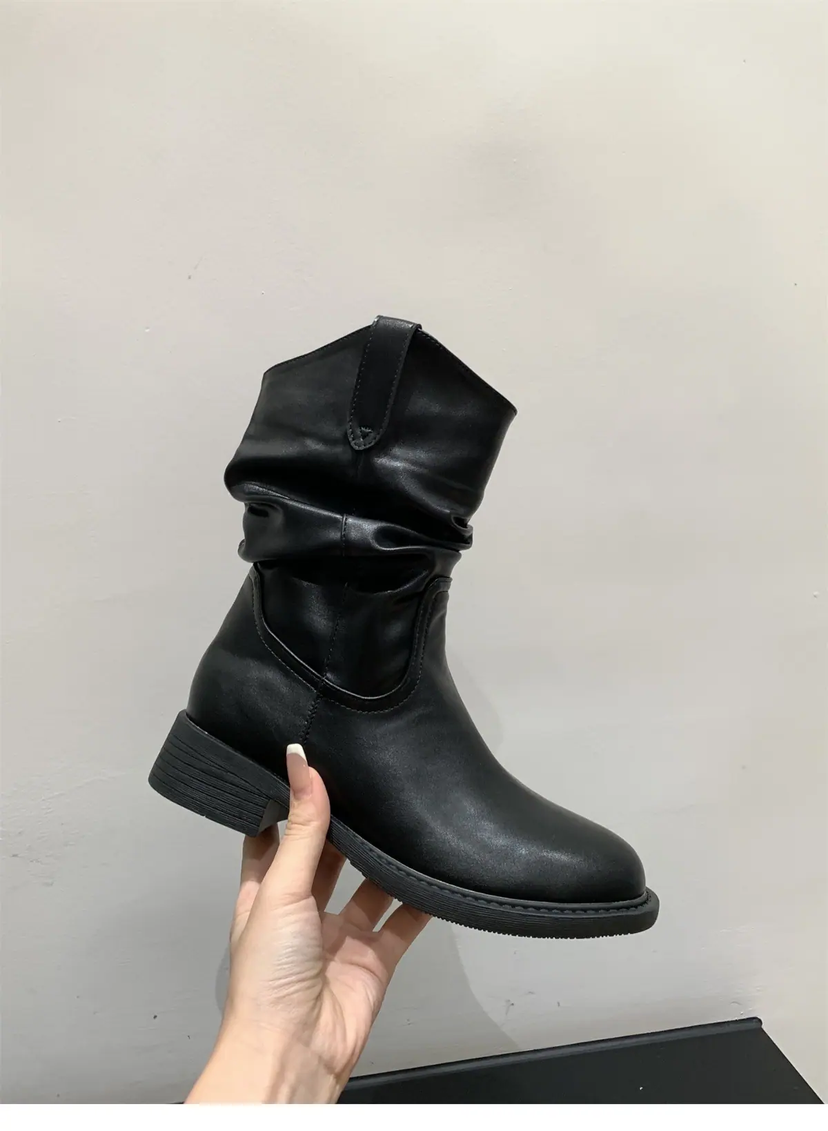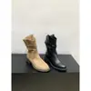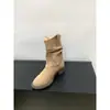 Botas adelgazantes de media pantorrilla con boca en V y suela gruesa para mujer, zapatos 2025 primavera y otoño, botas individuales, botas cortas holgadas de vaquero occidental, botas Martin