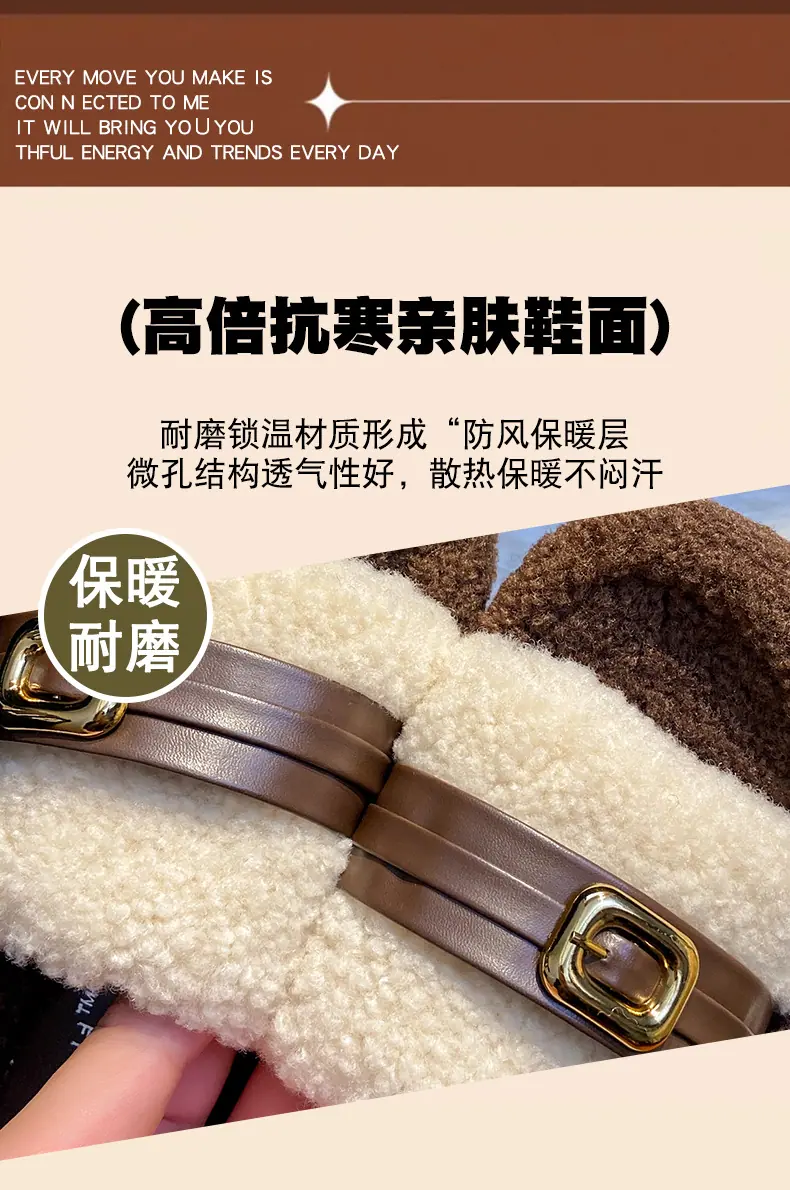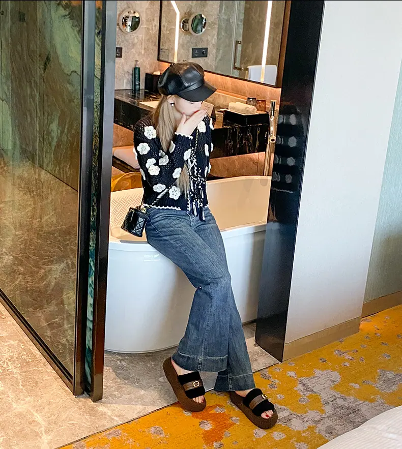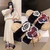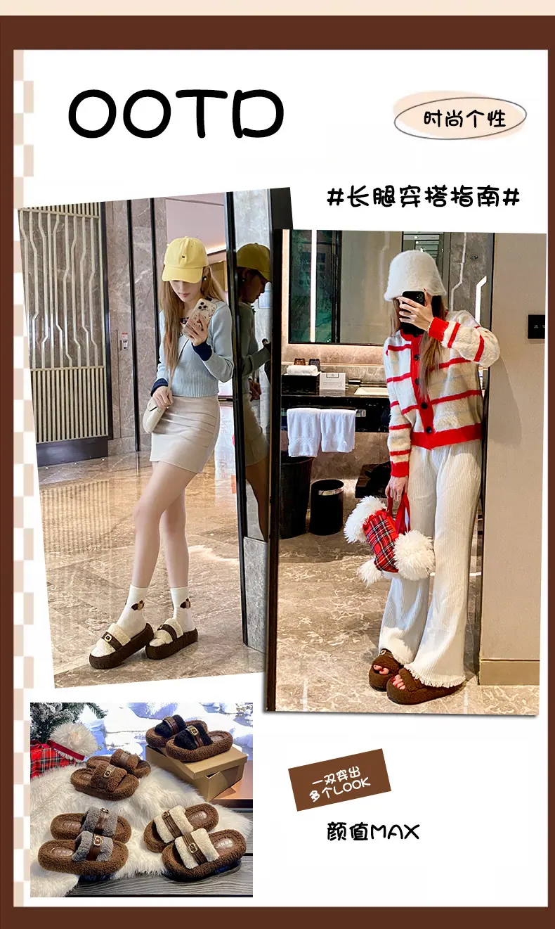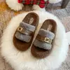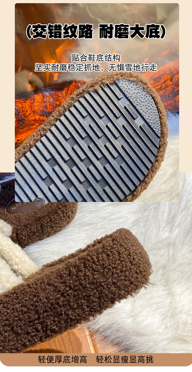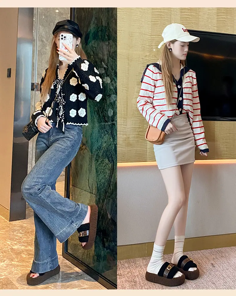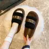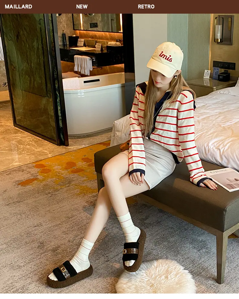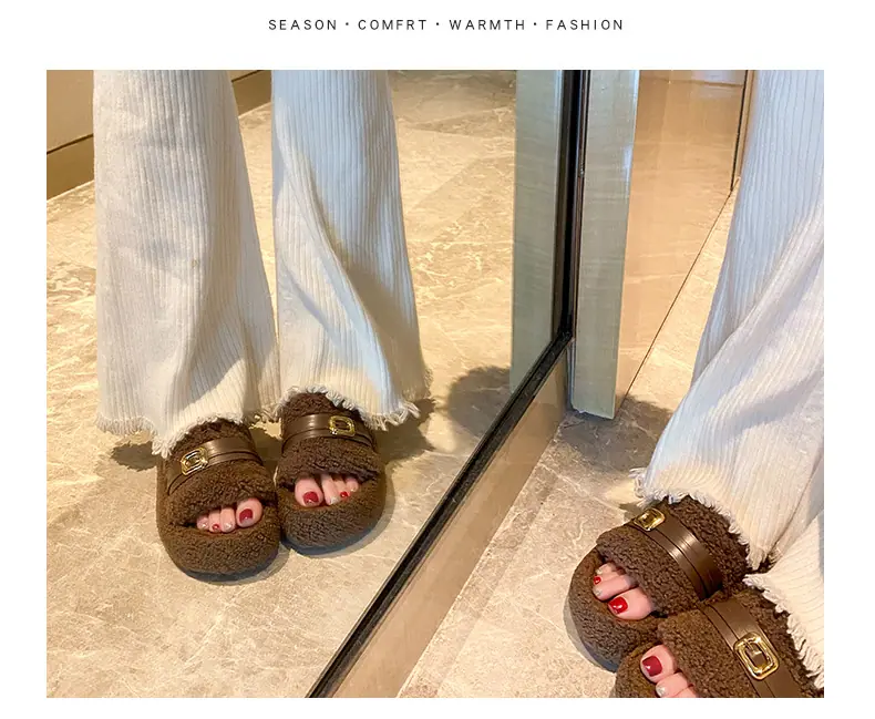 Pantuflas Peludas de Fondo Grueso Estilo Coreano para Mujer para Exterior 2025 Otoño/Invierno Nuevas Cómodas de Moda Versátiles de Algodón con Una Tira para Mujer