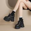 Zapatos de Salón Individuales Impermeables con Plataforma y Tacón Ultra Alto de 12 cm para Aumentar la Altura, Estilo Nuevo Primavera 2026, Punta Redonda, Suela Gruesa, Tacón Grueso, con Cordones, de Piel para Mujer