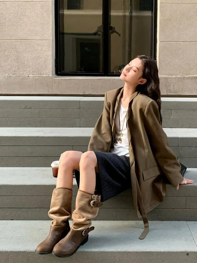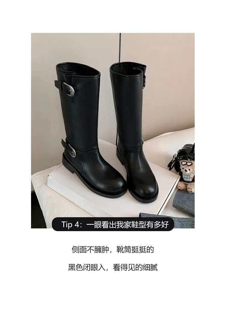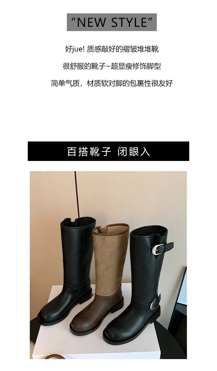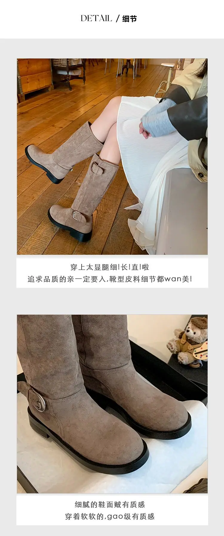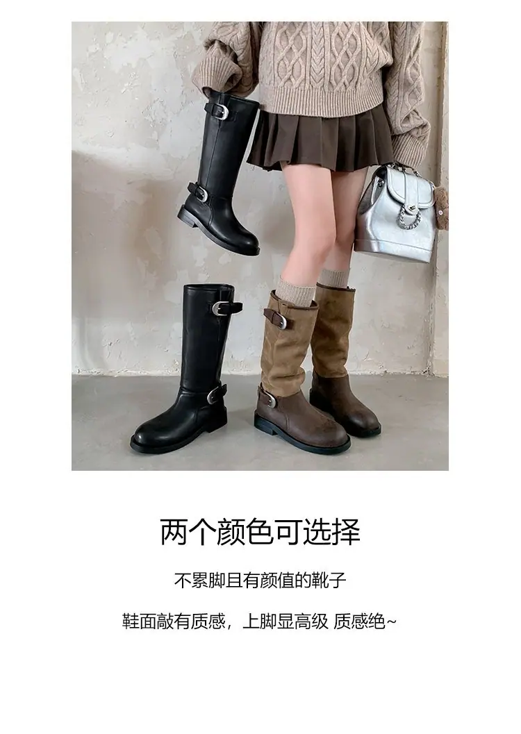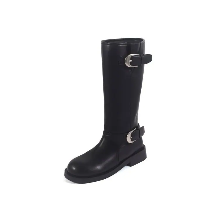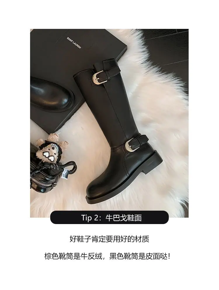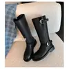 2025 Nuevas Botas Vaqueras Retro Occidentales para Mujer Estilo Británico Hebilla Caña Ancha Sobre la Rodilla Tacón Grueso Adelgazantes Botas de Jinete